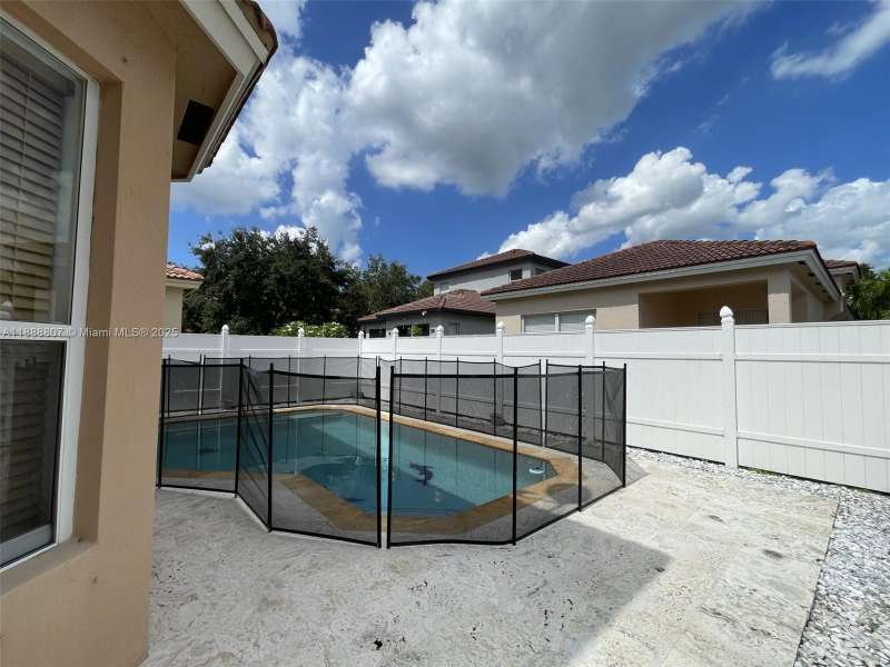 This beautiful two-story residence offers 2,146 sq ft with 4 bedrooms, 2.5 baths, a double-car garage and a private pool in a fenced backyard. The kitchen boasts wood cabinets, granite counters, and top-tier Stainless Steel appliances. Tile and laminate flooring throughout. This gated community offers a clubhouse, Olympic-style pool, gym and playground area – a true paradise. Minutes away from Baptist Hospital, the Florida Turnpike, charter schools, shopping, and entertainment. 2 months to move in and security deposit will be prorated during the first 6 months.