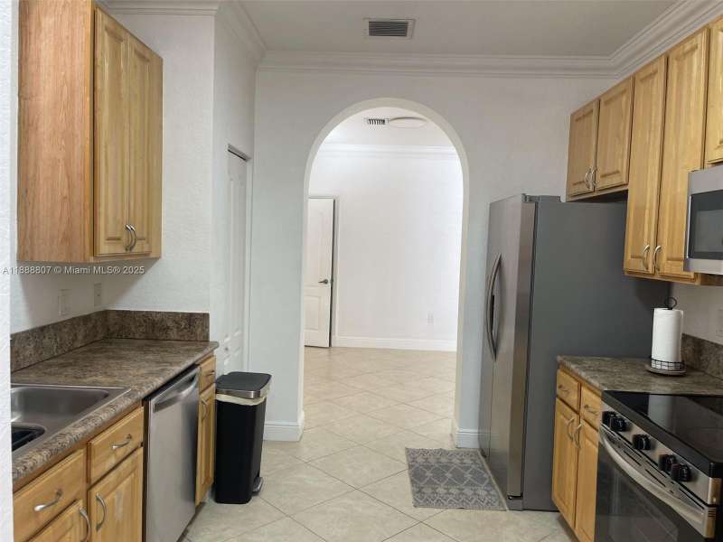 This beautiful two-story residence offers 2,146 sq ft with 4 bedrooms, 2.5 baths, a double-car garage and a private pool in a fenced backyard. The kitchen boasts wood cabinets, granite counters, and top-tier Stainless Steel appliances. Tile and laminate flooring throughout. This gated community offers a clubhouse, Olympic-style pool, gym and playground area – a true paradise. Minutes away from Baptist Hospital, the Florida Turnpike, charter schools, shopping, and entertainment.