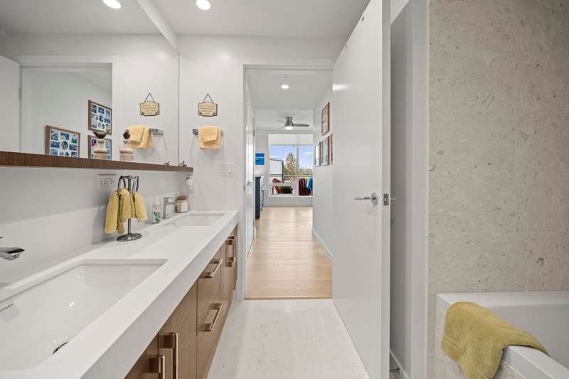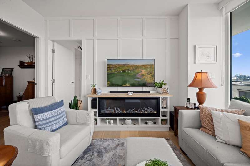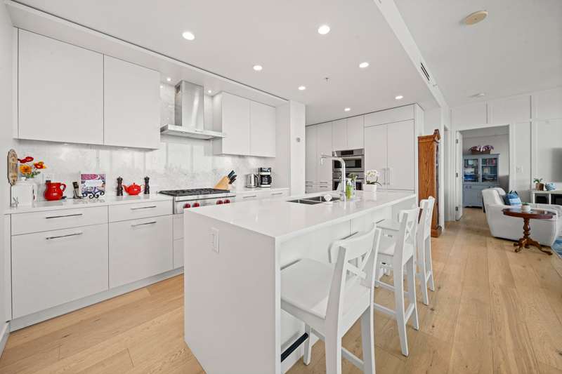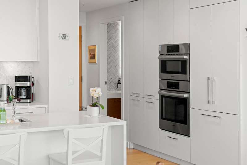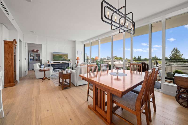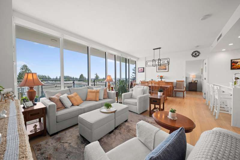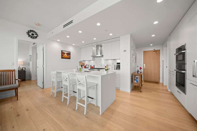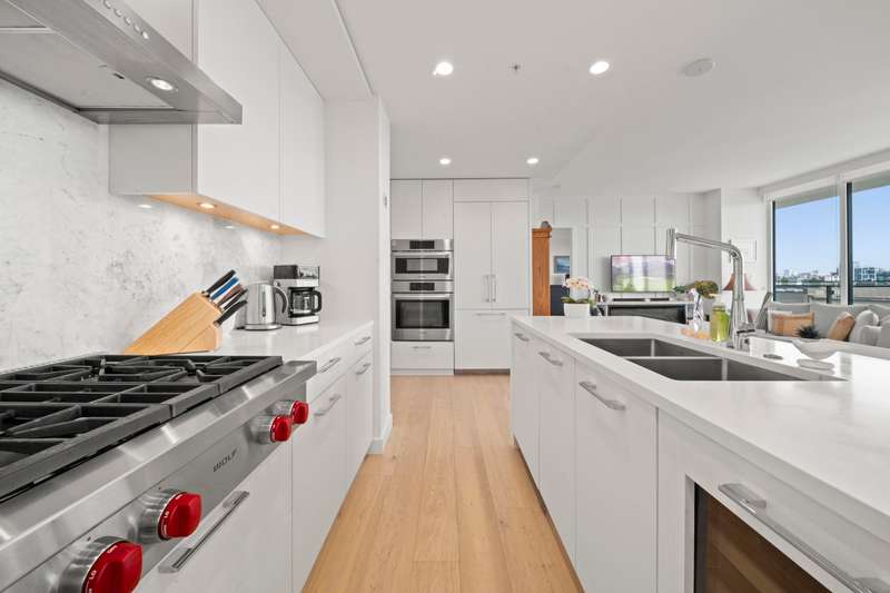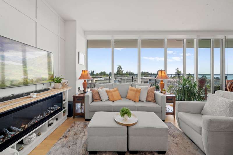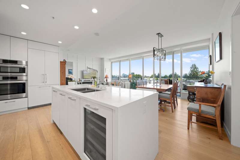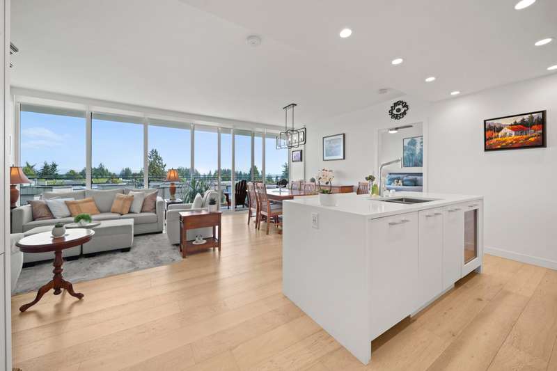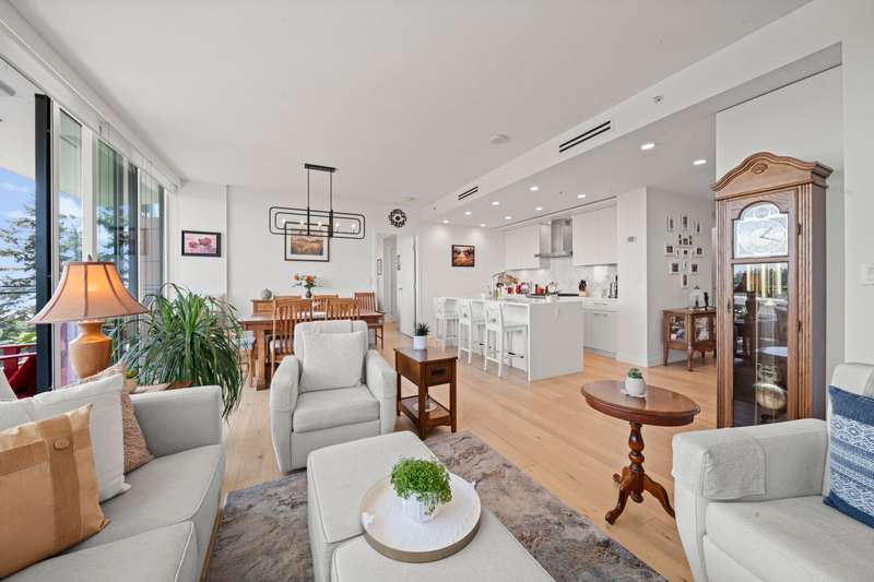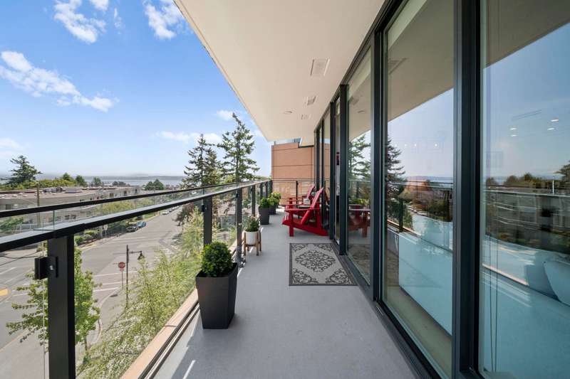 Experience the pinnacle of coastal living in this spectacular two bedroom plus den, three bathroom home by Marcon. Enjoy sweeping South East , unobstructed ocean views of Semiahmoo Bay, stunning sunrises, and breathtaking vistas of Mount Baker from your floor-to-ceiling windows.This residence is impeccably finished with top-tier features, including a Wolf gas range, Bosch appliances, built-in wine fridge, wide plank engineered hardwood floors, and custom wood cabinetry and elegant quartz countertops. In suite storage area with side by side Laundry and folding counter for exceptional convenience. Both bedrooms offer spa-inspired ensuites featuring double vanities, floor-to-ceiling marble tile, and heated ensuite floors. Just steps away from shops, restaurants, everything at your fingertips!