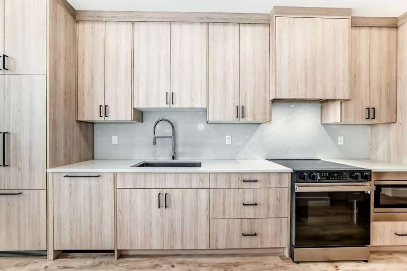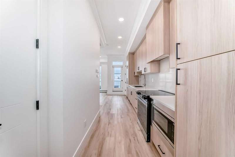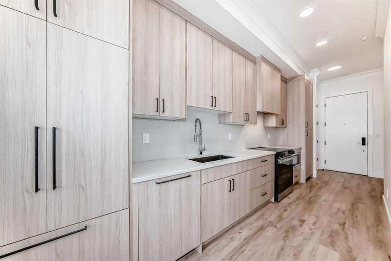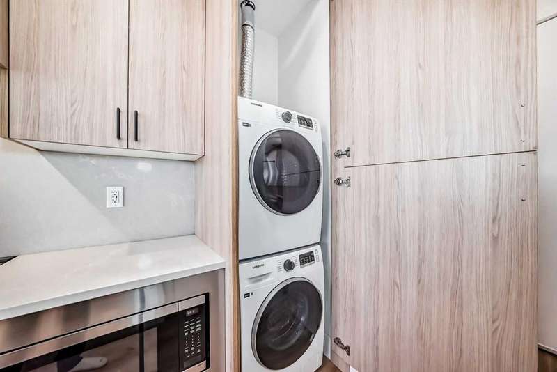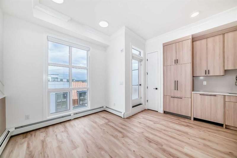 Be the first to call this newly built, never-occupied home yours! Located in the award-winning University District, this top-floor unit with 427.8 square feet of living space offers the perfect blend of style, comfort, and convenience. Step inside to a bright entrance area that leads you into a beautifully designed kitchen featuring quartz countertops, a panel-ready fridge & dishwasher, soft-close cabinetry, and modern fixtures. The open layout flows into the cozy living area, where huge windows flood the space with natural light and showcase sweeping top-floor views. Step out onto your private balcony to enjoy fresh air and an elevated perspective of the vibrant community. The bedroom offers a peaceful retreat with ample space and easy access to the elegant 4-piece bath. Every detail, from the California Knockdown ceilings to the carefully curated finishes, reflects modern craftsmanship. This home comes with titled underground parking for your convenience and is part of an amenity-rich building—enjoy access to inviting common areas designed for connection and relaxation. Outside your door, the University District’s walkable streets offer boutique shops, dining options, parks, green spaces, and scenic walking paths. Plus, you’re just minutes from the University of Calgary, Market Mall, Foothills Medical Centre, and countless lifestyle amenities. Whether you’re a first-time homeowner, an investor, or looking for a stylish city retreat, this property offers a fresh start in one of Calgary’s most sought-after communities!