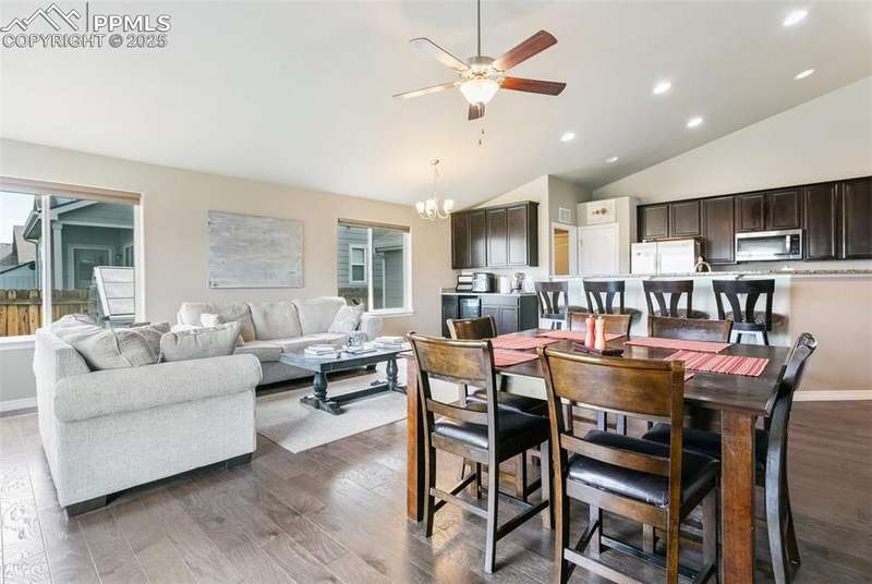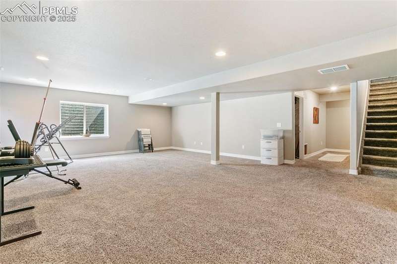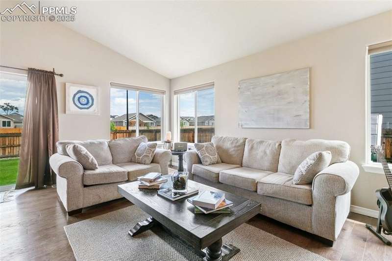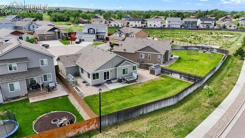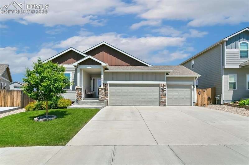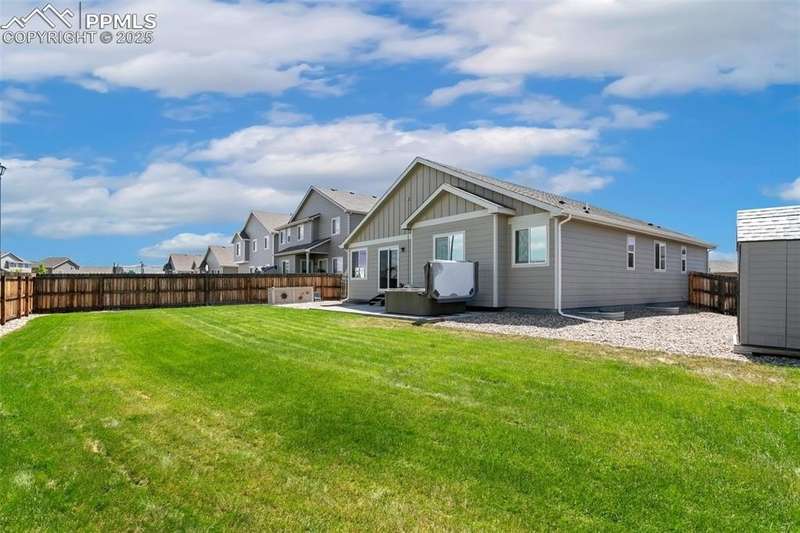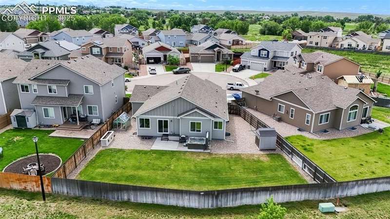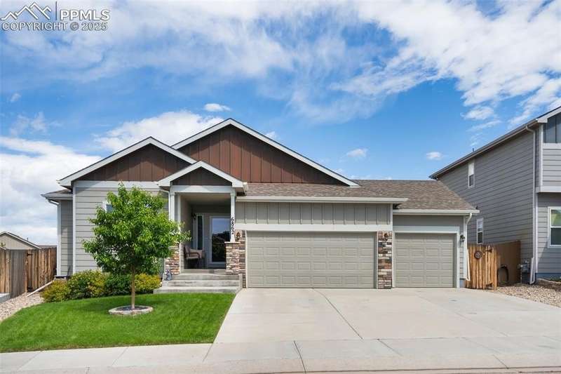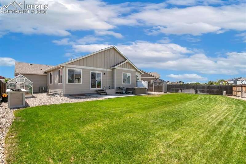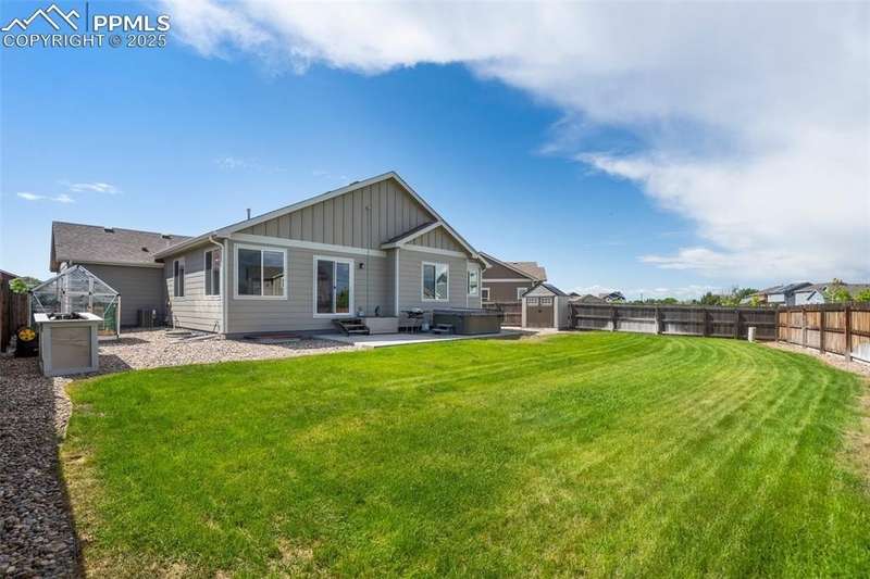 Welcome to this spacious 5-bedroom, 3-bath ranch-style home with a 3-car garage, ideally situated on a generous lot with great access to Fort Carson and Peterson Field. Step inside to an open-concept great room with vaulted ceilings and abundant natural light—perfect for entertaining or relaxing. The kitchen includes beautiful cabinetry, granite countertops and a nice size pantry. The main level features a private primary suite with attached bath and walk-in closet, along with two additional bedrooms and a full hall bath. The finished basement adds two more bedrooms, a full bathroom, and a craft room. It is a great flex space for office, playroom or additional bedroom. You also have a large family or rec room offering flexible space for guests and hobbies. Hard to find storage as well. Outside, enjoy the perks of Colorado living with a large backyard that includes a greenhouse, storage shed, and a private hot tub—ideal for unwinding under the stars. Located on a cul-de-sac with easy access to schools, shopping, parks, and multiple military bases this property offers the perfect blend of space, comfort, and convenience.
