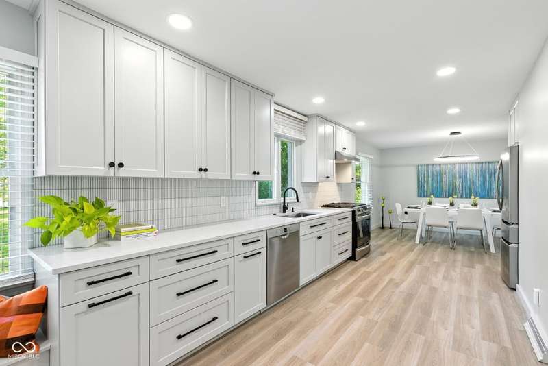 The original owners beautifully updated this 4-bedroom, 2.5-bath home on a half acre lot that perfectly blends charm, comfort, and functionality. From the moment you arrive, you're greeted by a welcoming front patio with elegant French doors. Step inside to discover all-new luxury vinyl plank (LVP) flooring throughout the main level, offering both style and durability. The home features two spacious living areas, including a cozy family room complete with a fireplace and custom built-in shelving. The modern kitchen boasts new custom cabinetry, stainless steel appliances, and a sleek tile backsplash, making it a chef's dream. The bathrooms offer ample space and style, featuring new vanities and finishes for a fresh, contemporary feel. Upstairs, the private primary retreat includes its own ensuite bathroom, while three additional generously sized bedrooms provide comfort for family or guests. The finished lower level offers flexible living space, ideal for a game room, playroom, home office, or additional lounge area. The fully fenced outdoor space is a true gem, set on a sprawling half-acre lot, offering plenty of room to relax, garden, entertain. Additional updates include a 3-year-old driveway, new furnace and A/C unit, and a new sump pump installed in July 2025.