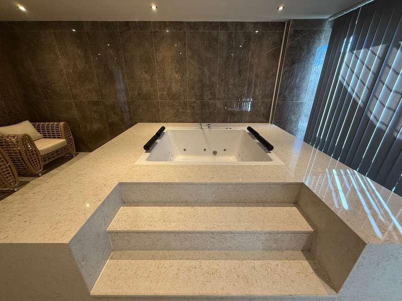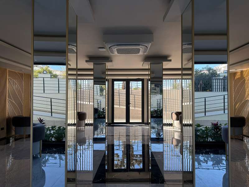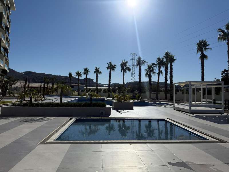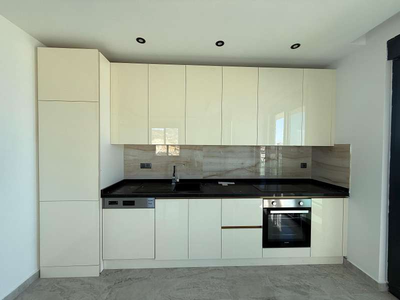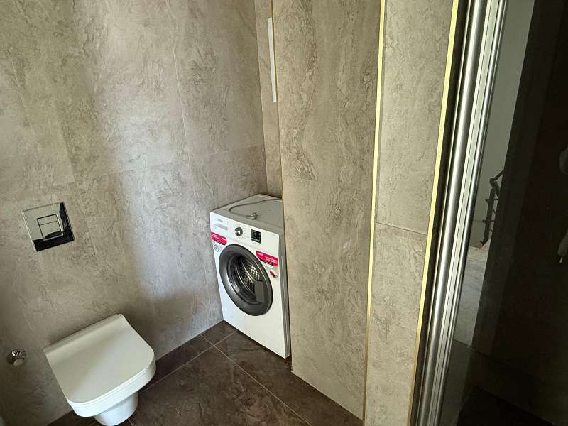 In Alanya, apartment for sale is designed with high-quality features such as PVC windows, double-glazed balcony doors, ceramic flooring, a built-in refrigerator, an Altus washing machine, an Arcelik dishwasher, and a Veito instant water heater. The bathrooms are equipped with underfloor heating.