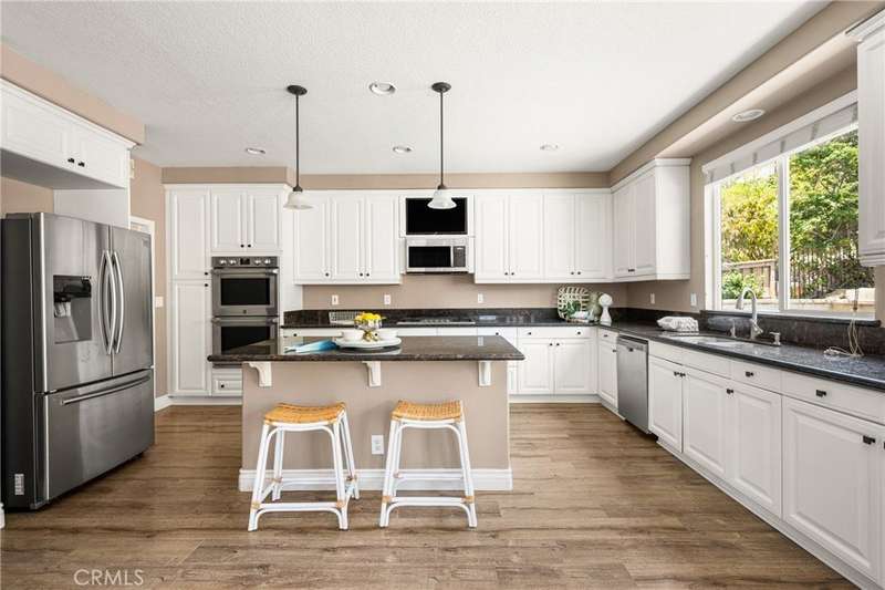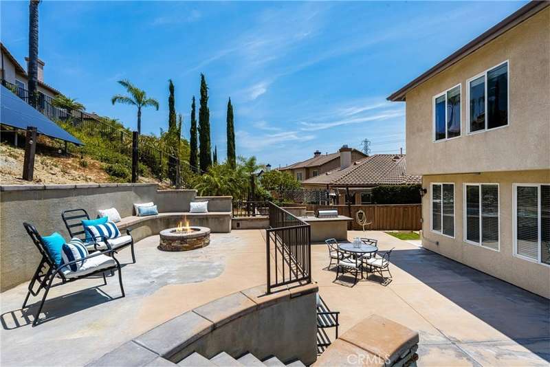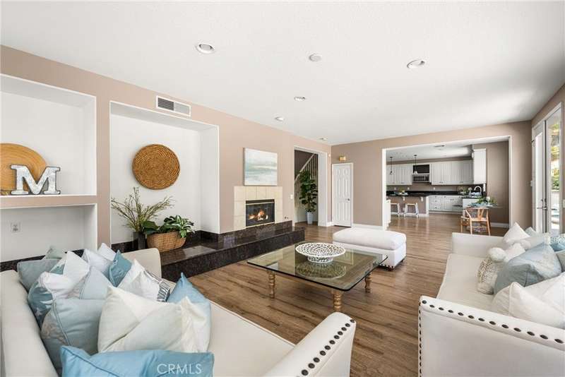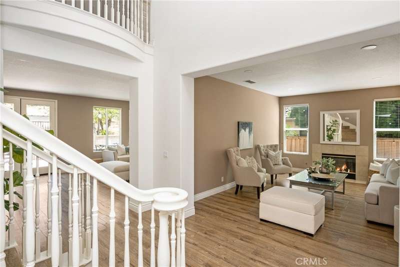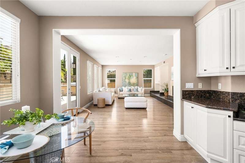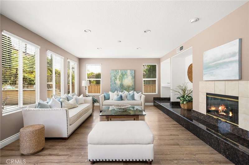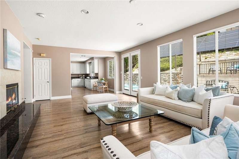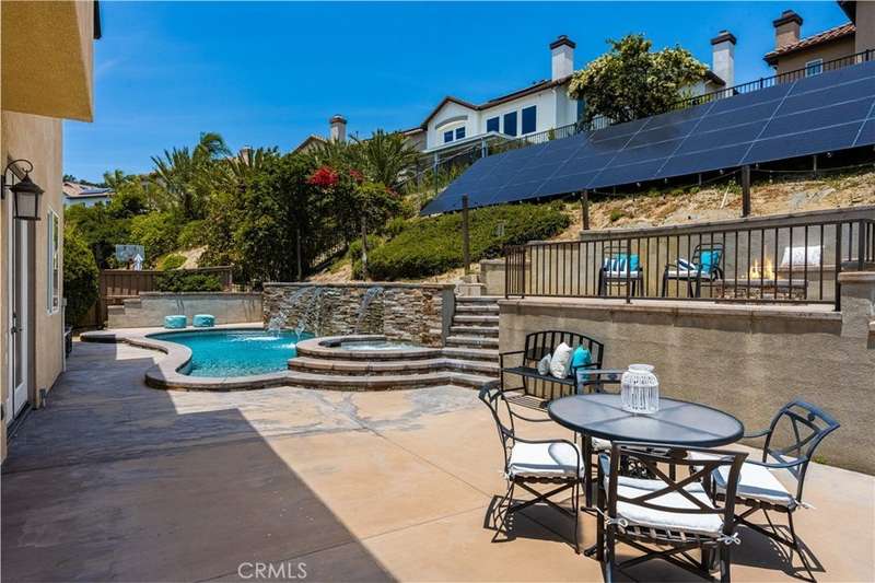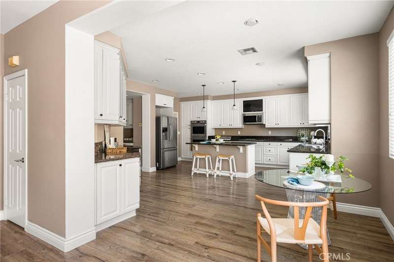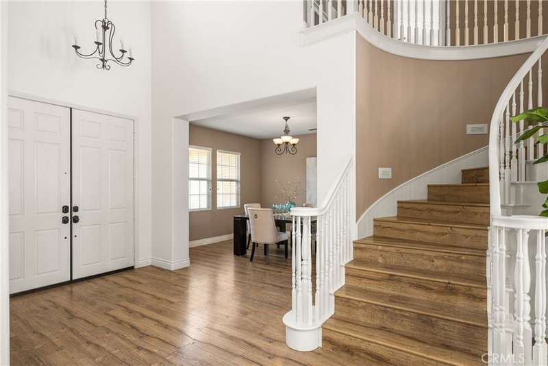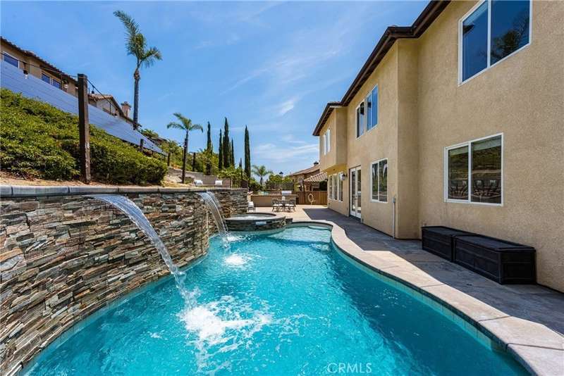Step into luxury living in Serrano Heights Estates in Orange. This stunning 5-bedroom, 3-bath home offers 3,620 square feet of beautifully designed space on a quiet cul-de-sac. Soaring ceilings, a grand sweeping staircase, and rich laminate floors create an inviting yet sophisticated atmosphere from the moment you enter. The gourmet kitchen features a granite island, stainless steel appliances, and abundant storage, opening seamlessly to a cozy breakfast nook and spacious family room with a fireplace. French doors lead to a private backyard oasis with a saltwater pool and spa, waterfalls, built-in BBQ, and an elevated patio with a fire pit, perfect for entertaining or relaxing under the California sun. A main-floor bedroom and full bath offer flexibility for multigenerational living or guests. Upstairs, the primary suite includes a spa-inspired bath and dual walk-in closets, while a converted loft adds a versatile sixth bedroom.