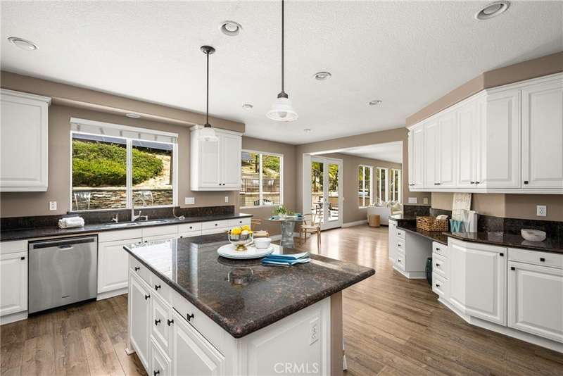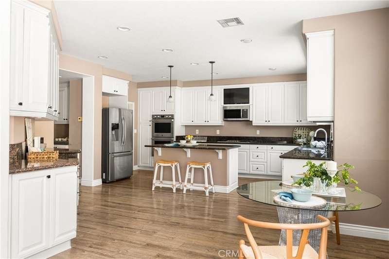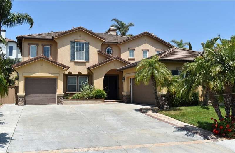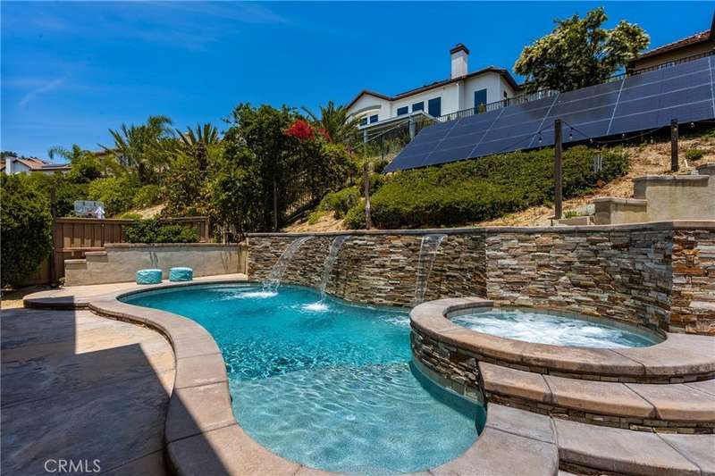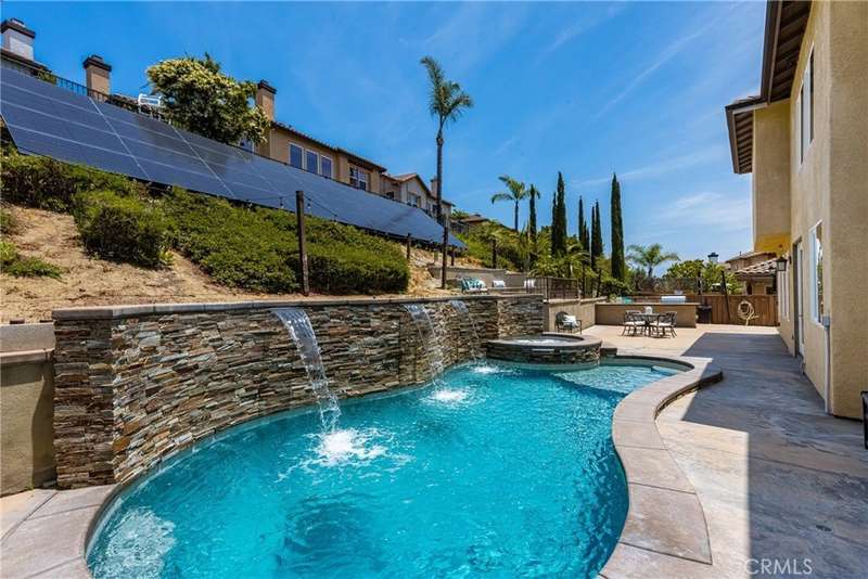 Price Improvement! Step into luxury living in Serrano Heights Estates in Orange. This stunning 5-bedroom, 3-bath home offers 3,620 square feet of beautifully designed space on a quiet cul-de-sac. Soaring ceilings, a grand sweeping staircase, and rich laminate floors create an inviting yet sophisticated atmosphere from the moment you enter. The gourmet kitchen features a granite island, stainless steel appliances, and abundant storage, opening seamlessly to a cozy breakfast nook and spacious family room with a fireplace. French doors lead to a private backyard oasis with a saltwater pool and spa, waterfalls, built-in BBQ, and an elevated patio with a fire pit, perfect for entertaining or relaxing under the California sun. A main-floor bedroom and full bath offer flexibility for multigenerational living or guests. Upstairs, the primary suite includes a spa-inspired bath and dual walk-in closets, while a converted loft adds a versatile sixth bedroom.