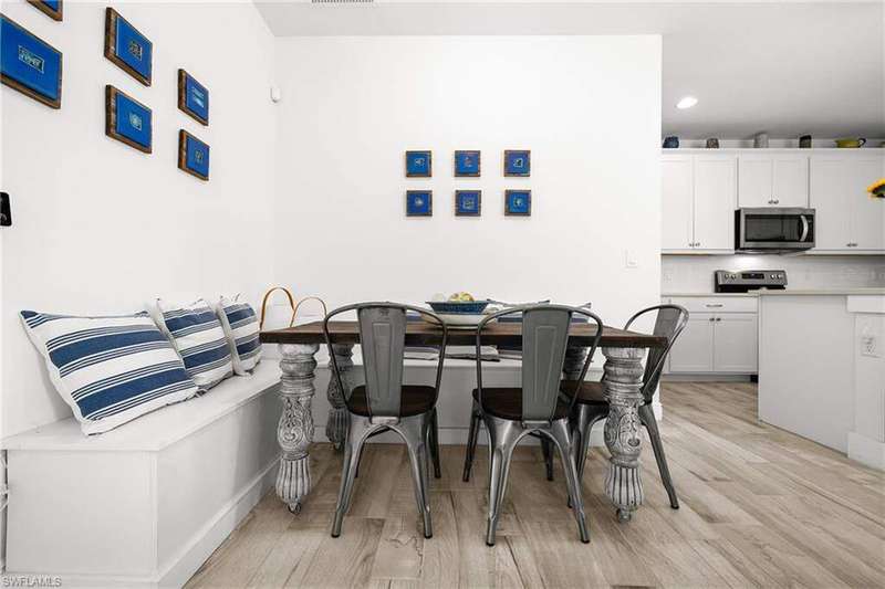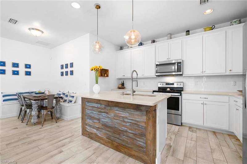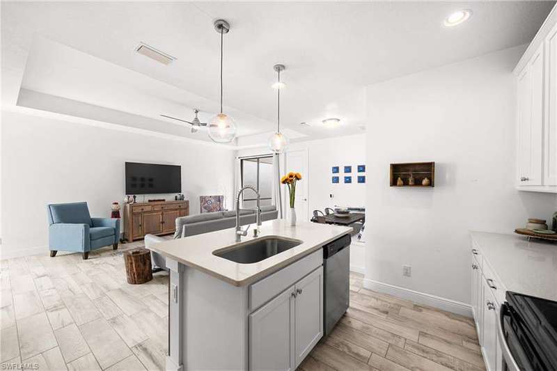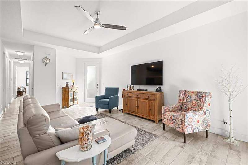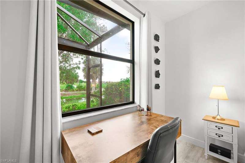 Prime Location meets functional living & Low HOA Fees at this extraordinary one level single family residence in Natura at Bonita Fairways! Meticulously kept home with an open floor plan, extended lanai with sweeping golf course views at a price that cannot be beat! The owners have invested in high-quality upgrades, such as exterior rain gutters, special Loxon waterproofing masonry exterior paint, a Ring camera, an alarm system, and 8' doors throughout. Custom window treatments and five specialty fans enhance the living space. The well-appointed kitchen features upgraded stainless steel appliances, quartz countertops, pendant lighting, a large farmer-style sink, and soft-close white shaker-style wood cabinetry. The entire home boasts light-colored porcelain plank-style flooring. The spacious owner's suite offers a sliding glass door leading to the lanai, while the bathrooms are fitted with top-of-the-line cabinetry and quartz countertops.The screened-in lanai has been extended, offering an extra 8.5' x 16' of space, complete with "granite grip" flooring for durability and comfort. Located in the desirable Bonita Fairways community, this property provides access to an 18-hole Gordon Lewis designed golf course, clubhouse, pool / spa, restaurant, pickle ball courts & a fitness center. Five miles to the beach & surrounded by all the best shopping, dining & nightlife that bonita springs has to offer. Truly a must see to appreciate this wonderful opportunity to own a better than new home in the heart of Bonita Springs!