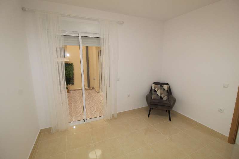 This ground-floor apartment is fully modernized and offers a spacious and bright interior. It features two generously sized bedrooms and two stylish bathrooms, including an en-suite for the master bedroom. The open-plan layout includes a contemporary kitchen with integrated appliances, a dining area, and a comfortable living room filled with natural light. The property also benefits from a private patio and a balcony with partial sea views, ideal for enjoying the Mediterranean breeze.
