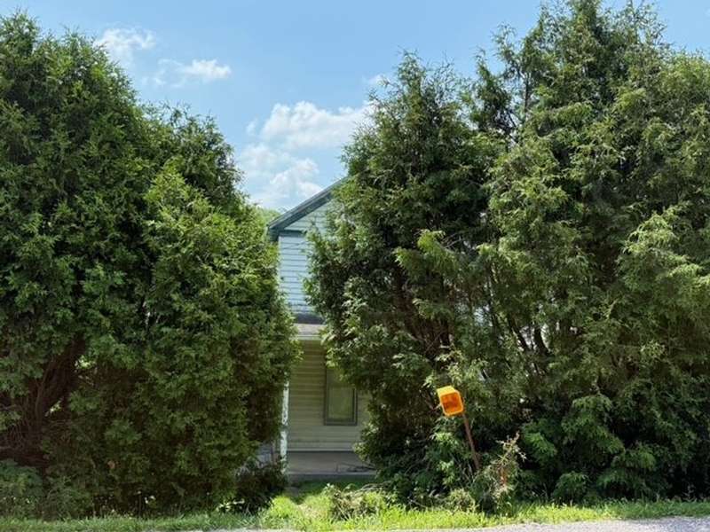 Older home 3 bedrooms 1 Bath with 4 car garage. Home is in need of major renovation. Large L shaped mowed yard With a creek running through it, some out buildings. Property is subdividable and could be used for commercial