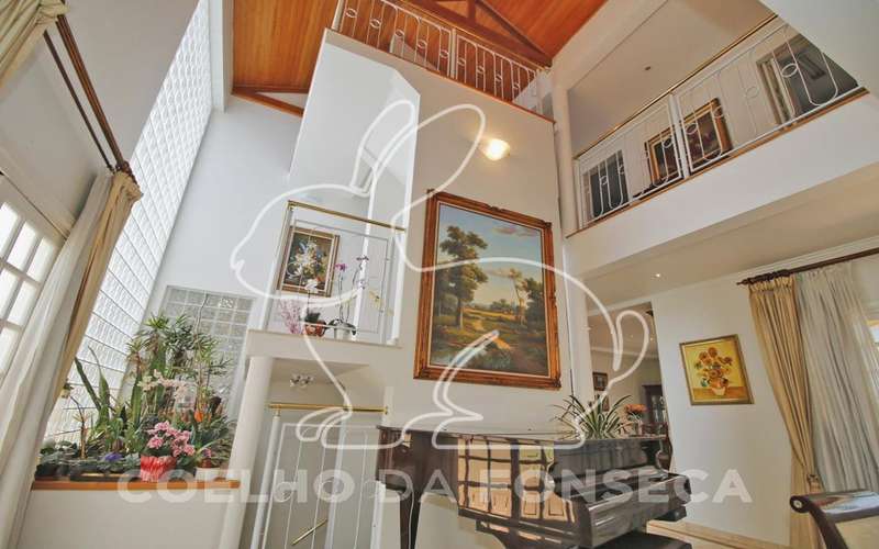 Excelente imóvel, fora dos padrões normais de qualidade. Construído com excelente projeto de arquitetura, pé direito com sete metros, forro de madeira com travessas de vigas de madeira nobre. Jardim interno com destaque na qualidade das flores e ramos. Toda a área ajardinada da casa é projeto único, incluindo aquário na entrada do imóvel com carpas coloridas. O piso em mármore bege em toda parte térrea e piso superior. Banheiros de extrema qualidade. Vale a pena conhecer, rua curta e arborizada.