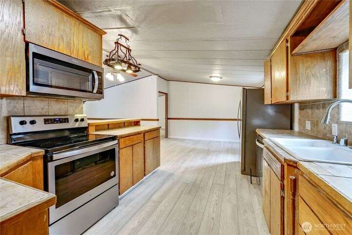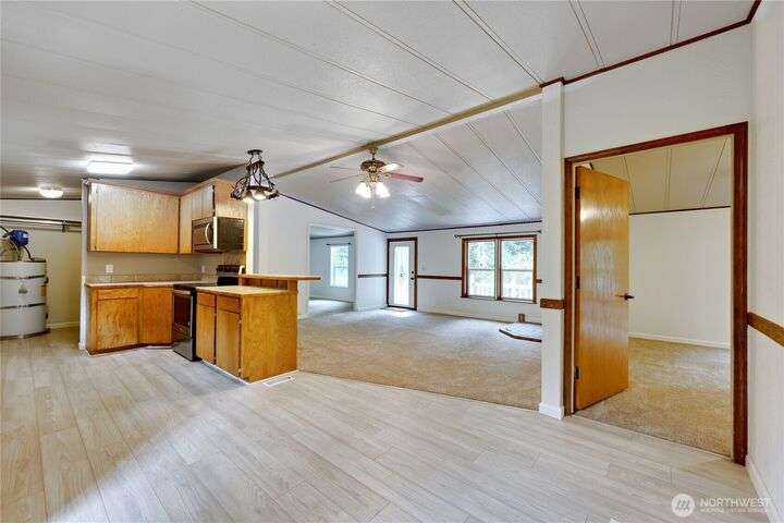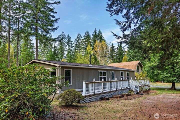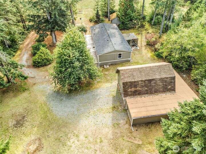 Don’t miss your chance to own this private retreat on nearly 5 acres of peaceful, usable land. Huge Creek meanders through the north end of the property, creating a serene, park-like setting with fishing opportunities. The 3-bedroom, 2-bath, 1,512 sq ft home features NEW FLOORING, vaulted ceilings, ceiling fan, fresh paint, and a convenient utility room. A 34’x38’ shop provides 4 parking spaces, a loft, and additional workspace—ideal for projects or storage. With open acreage, outbuildings, a chicken coop, fruit trees (apple & cherry), this property offers great space for farming, potential equestrian use, additional dwellings for multi-gen use, or simply enjoying the privacy and space.