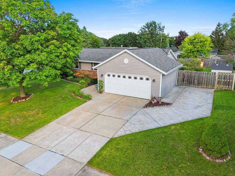 Amazing West De Pere location! This inviting home features 3 bedrooms, 2 full baths, and a 2-stall attached garage with epoxy floor. The exterior shines with beautiful landscaping, curb edging, fenced backyard, spacious patio, and storage shed. Inside, you’ll love the open feel of the large living room with cathedral ceilings and the kitchen with stylish tile backsplash. The primary bedroom provides dual access to the main level bath. The finished lower level adds a generous rec room, full bath, and plenty of storage space. Close to Patriot Park—come see all this wonderful home has to offer!