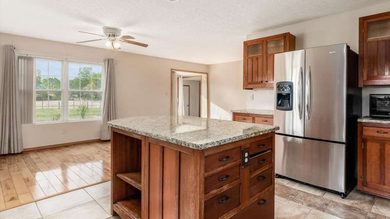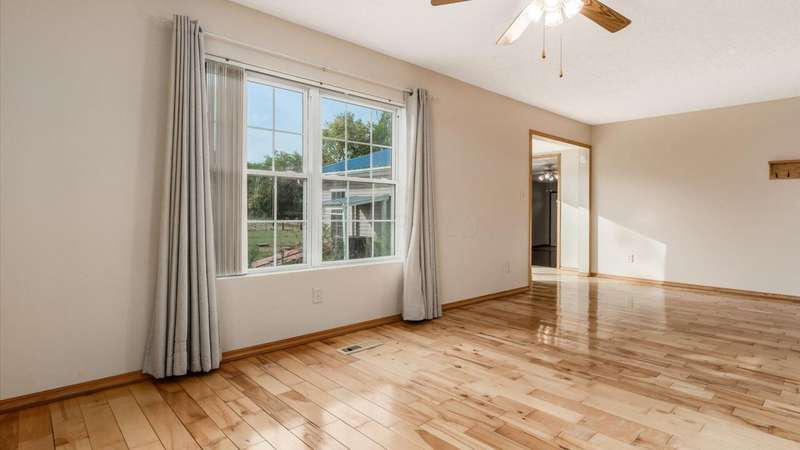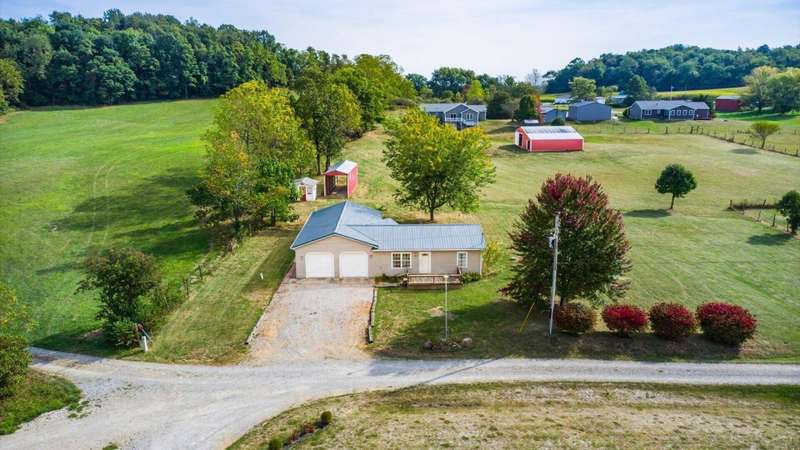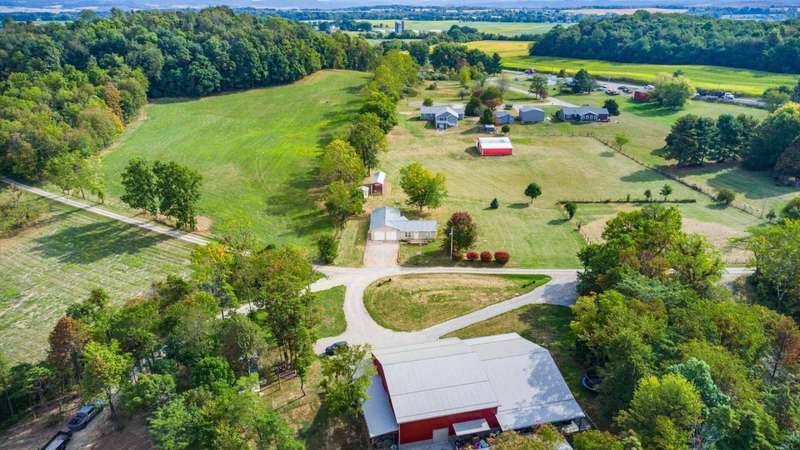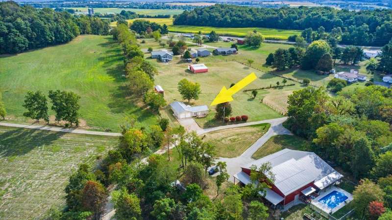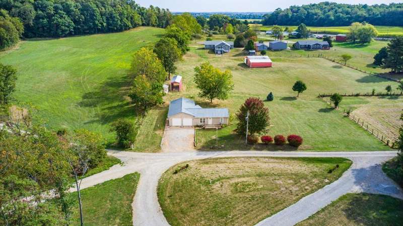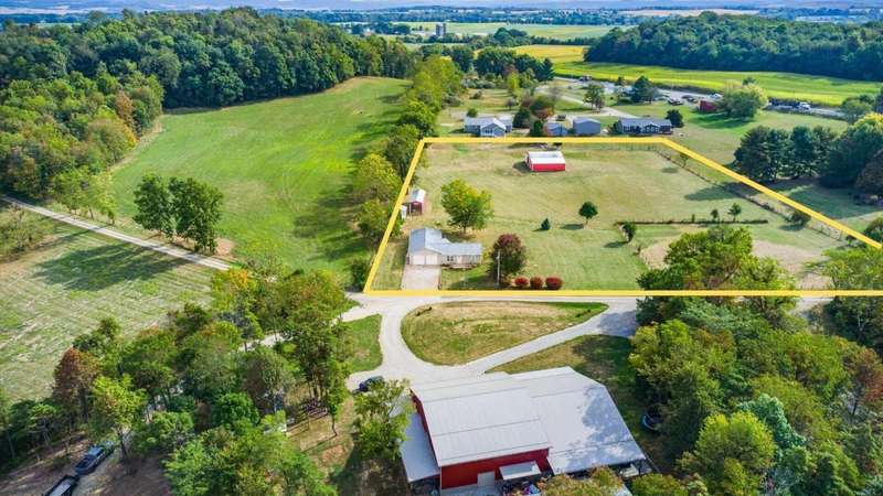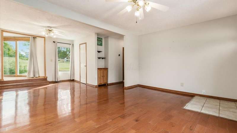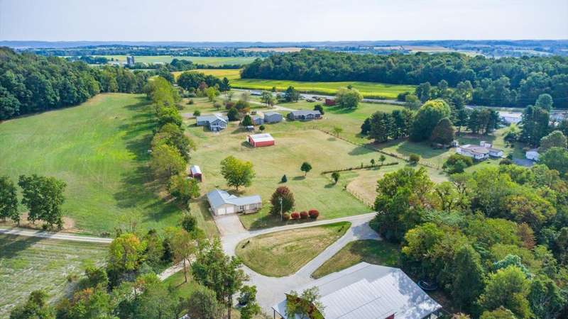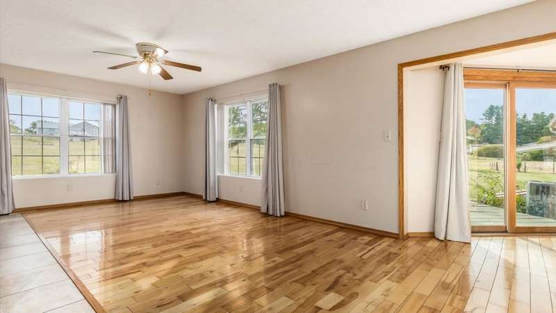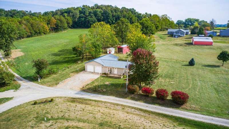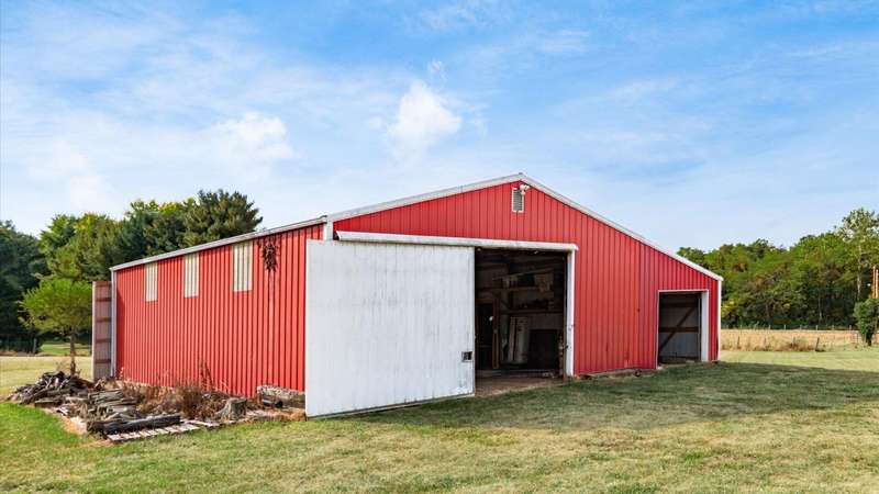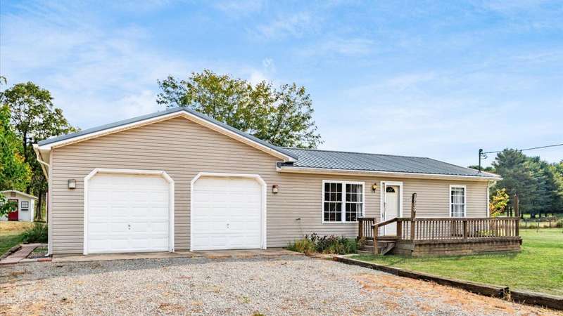 Come see the best country living can offer with this charming ranch home on over 4 rolling acres offering stunning countryside views. You'll have plenty of room for equipment, additional vehicles, toys, farm animals, livestock or a working shop in the large 32X40 pole barn complete with utilities (electric and water) OR the 16X40 covered building perfect for a camper/trailer/boat storage. Finally a cute shed completes the outbuilding storage options. The home features easy one story living with a great open concept layout and gleaming hardwood floors, large kitchen with granite countertops, abundance of custom wood cabinetry, tile backsplash, stainless steel appliances with nicely sized island. Walk in pantry for additional storage. Loaded with light from lots of windows. Two nicely sized bedrooms with large full bath and additional half bath. Great basement with high ceilings can be finished for additional living space. Overlook the beautiful countryside from your back deck. Enjoy the privacy and surround yourself with nature on this one - all while being close to major highways and easy access to Columbus. Spectrum high speed internet is available.