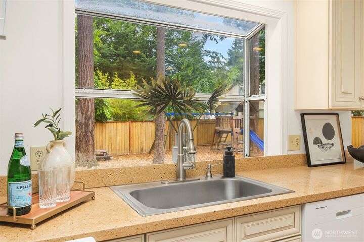 Convenient and spacious property located just minutes from everything in Kirkland! New bathrooms and fresh paint throughout. Open main floor is perfect for hosting. 3 bedrooms, 2 baths plus office alcove located upstairs, away from the action. Large, flat lot with completely fenced back yard provides space to play and relax. Seller converted garage to bonus room and can convert back to garage before closing, if buyer wishes. Additional parking for multiple cars on side of home. Located in top rated Lake Washington school district. Quiet location yet just minutes from parks, beaches, shopping and dining.