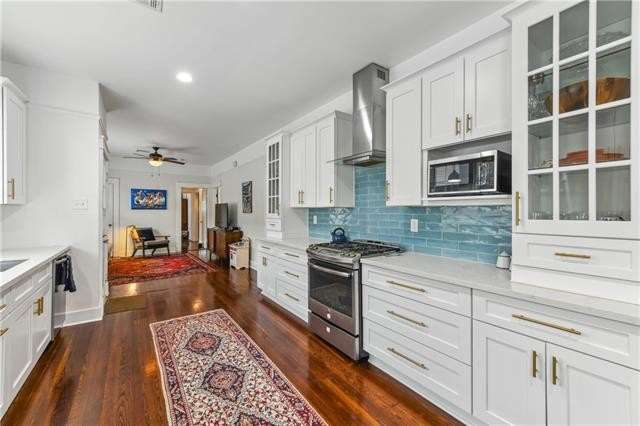 This craftsman cottage steps from Oak Street was renovated in 2016/2017 and offers a spacious floorplan with 3 bedrooms and 3 full baths, double parlors for formal living room and dining room, a modern kitchen open to den and breakfast area, plus a bonus study. Primary bedroom features 2 closets and a beautiful on-suite bathroom with double vanity and huge walk-in shower. Rear screened-in porch offers a wonderful extension of the living space. Plenty of additional green space with a large side yard. Original hardwood floors throughout. This prime location offers all the walkability of Oak Street and the Riverbend including easy access to groceries, pharmacies, restaurants, shops, yoga, schools, streetcar, music clubs, and sooo much more!!!