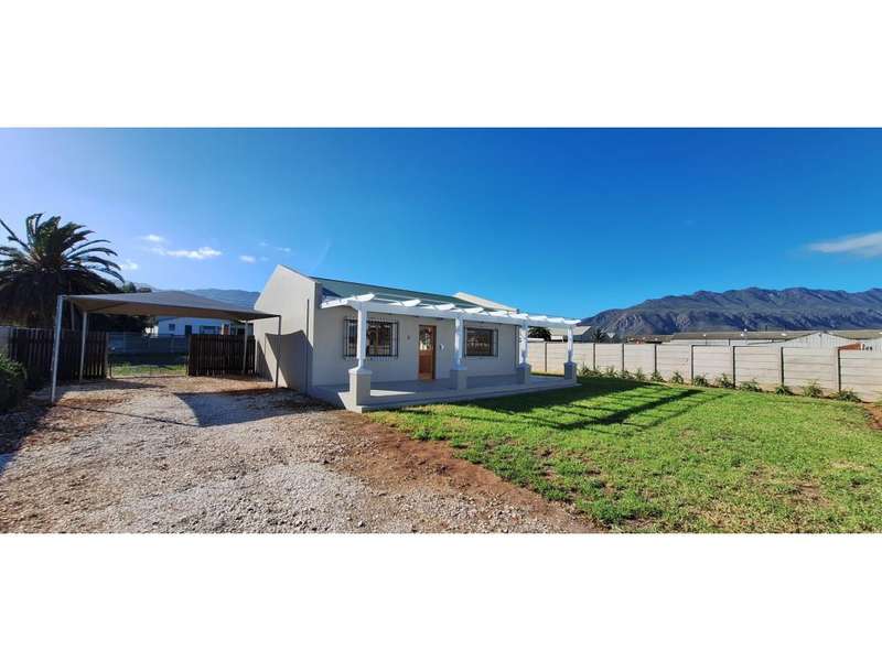 Situated on the edge of Ashton, this home offers lovely views of the Langeberg Mountains and the surrounding farmland. Recently renovated, the home welcomes you with a spacious open-plan lounge, dining, and kitchen area?Çöperfect for relaxed living and entertaining. The kitchen features built-in cupboards with direct access to the large, enclosed back garden, ideal for outdoor enjoyment or future expansion. A lovely front stoep adds to the home?ÇÖs appeal, providing the perfect spot to enjoy the peaceful scenery. The home comprises two well-sized bedrooms, both with built-in closets, and a full bathroom that serves the household comfortably. The property is fully enclosed, ensuring privacy and security, and includes covered parking for two vehicles.