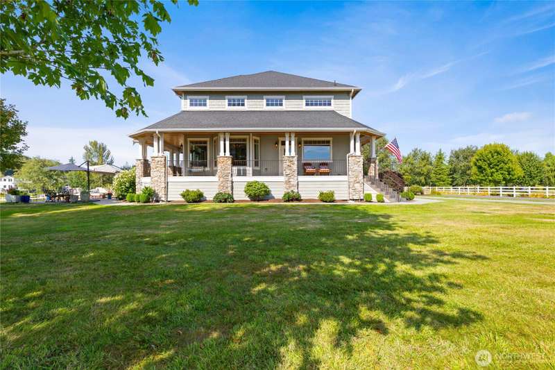 Tuscan-style estate in the prestigious gated equestrian community of Sky Mountain Ranch. Enjoy panoramic mountain views from nearly every room, chef’s kitchen perfect for entertaining, and an elegant great room with soaring ceilings and cozy charm. The main-level primary suite opens to a wraparound deck, while upstairs offers 3 bedrooms—2 with private en suite baths. A versatile bonus room with 2nd kitchen adds space for guests or multi-generational living. Modern comforts include central A/C, backup generator, oversized 3-car garage with workshop, and a detached artist studio. Community amenities feature a 17-stall barn, indoor riding arena, and 2-acre paddock—perfect for equestrian enthusiasts seeking luxury, privacy, and natural beauty.
