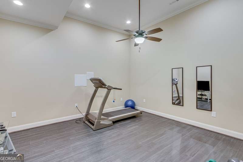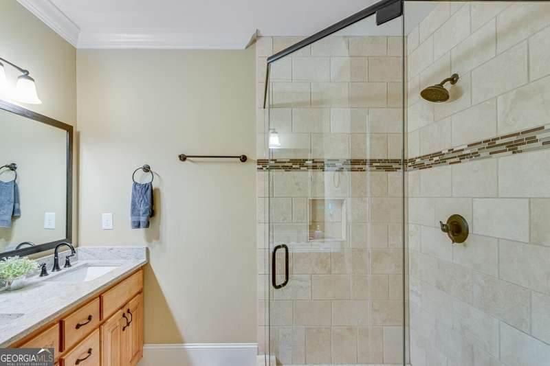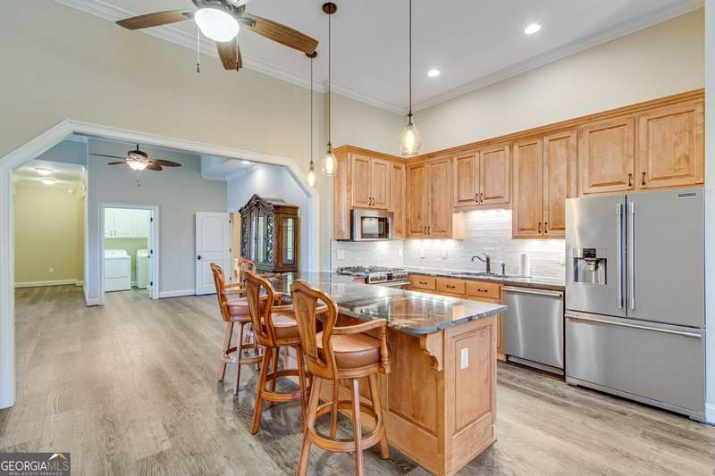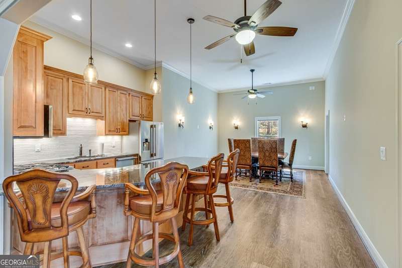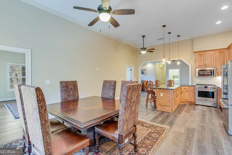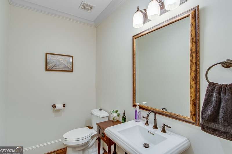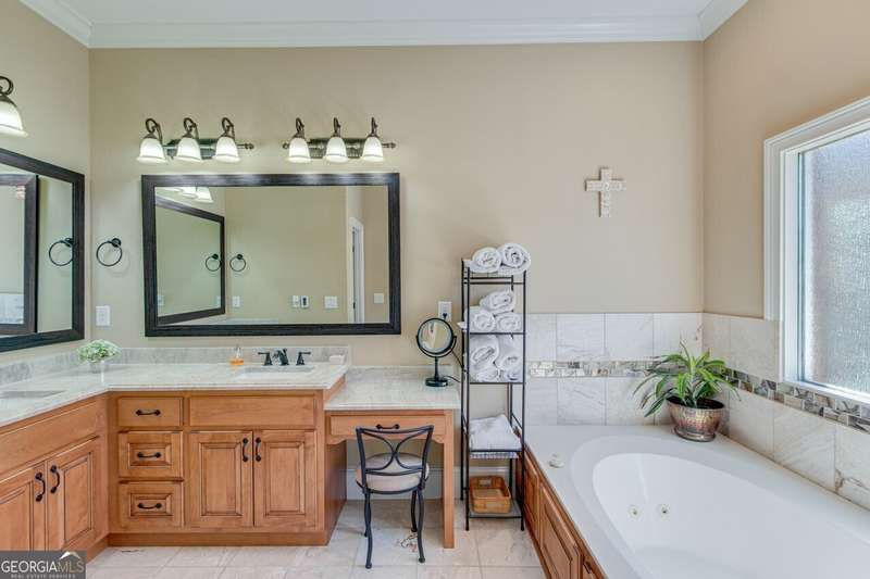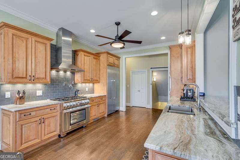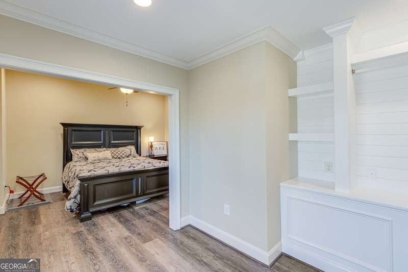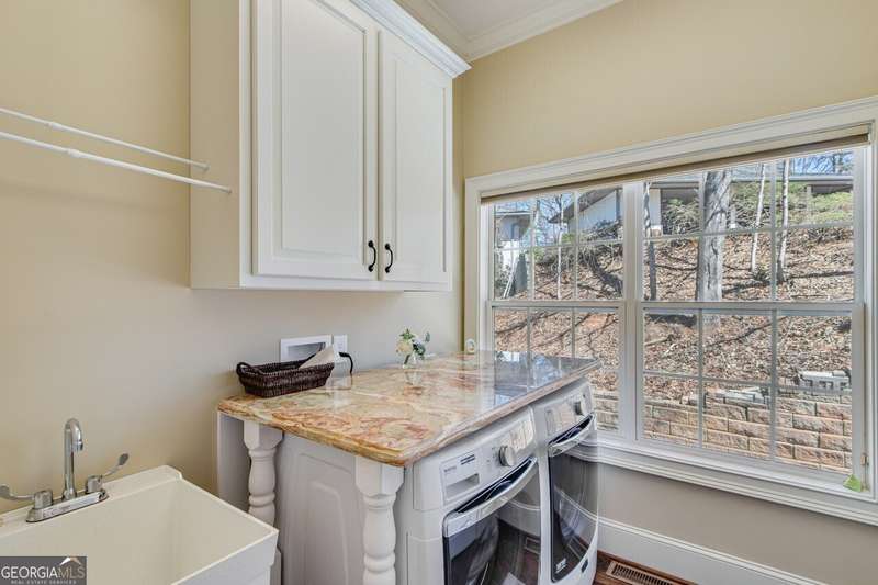 This elegant, traditional Lake Lanier home has everything you need for fine lake living! Conveniently located just 10 minutes from downtown Gainesville, The Rowing Venue, the hospital district, shopping, and restaurants, this home is designed for the ultimate lakefront lifestyle. With stunning lake views from most rooms, it also features a paved path leading to a single-slip party dock in deep, calm, no-wake waters-perfect for lounging and swimming. Situated on a double lot with a low CORPS line, the property offers a circular driveway and abundant parking, along with a drive-around access to the lower-level double garage-ideal for a golf cart, boat toys, a workshop, and extra storage. Inside, the main floor boasts an open layout with all hardwood floors. The great room, featuring a striking stone wood-burning fireplace, flows seamlessly into the kitchen, which includes granite countertops, a double gas range, and high-end Thermador appliances. A dining room and a study/office complete this space. The oversized primary suite is a true retreat, featuring a sitting area, double custom closets (one with a double-stack washer/dryer), heated travertine tile floors, a jacuzzi tub, a spacious shower, and double granite vanities. Additionally, the main level includes a second ensuite bedroom, a powder room, and a large laundry room. Upstairs, you'll find a guest bedroom, a full bath, and a large bonus room over the garage. The beautifully finished terrace level, completed in 2015, offers luxury vinyl flooring, a family room with a second stone wood-burning fireplace, a full kitchen with all appliances, a dining area, a large game room, a full guest bath, and an ensuite with its own private bath-perfect for entertaining or multi-generational living. Every bathroom is equipped with heated travertine tile floors, and the home features only hardwood and luxury vinyl flooring-no carpet. This exceptional Lake Lanier property combines elegance, functionality, and the best in lakeside living!