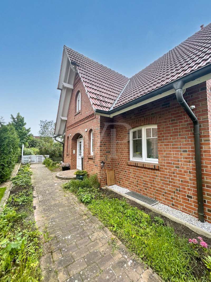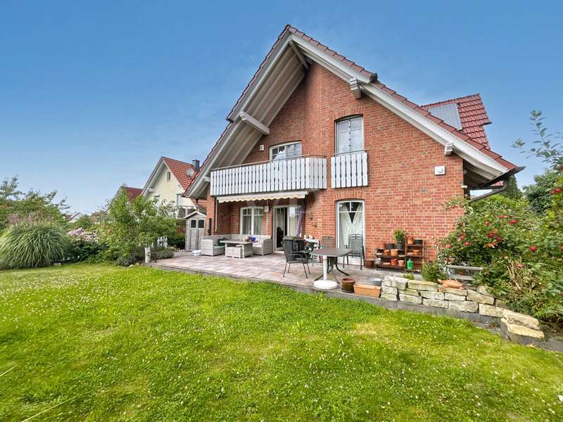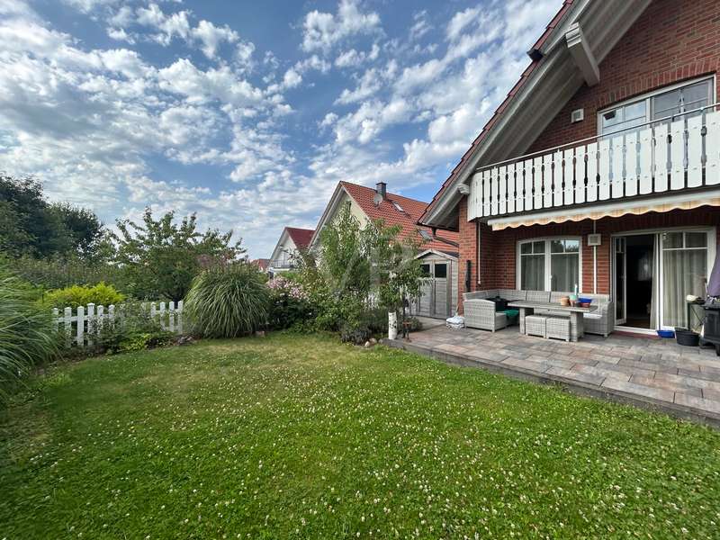 This attractively maintained detached house from the year 2000 stands on a plot of approx. 568 m² in a quiet residential area and combines spaciousness with contemporary living comfort. With a living space of approx. 172.05 m² and a well thought-out room layout, it is ideal for couples or small families who value a comfortable and functional home. As soon as you enter the house, you are greeted by an inviting hallway with plenty of space for a wardrobe and storage. On the first floor is the open-plan living and dining area, which is flooded with light thanks to the large, white wooden windows with double glazing. From here, you have direct access to the sunny terrace with adjoining garden, which is ideal for spending cozy hours outdoors. The well-kept outdoor area underlines the overall impression of the property. The living and dining area on the first floor is also characterized by newly sanded parquet flooring from 2022 and is separated by a beautiful glass element with a glass door, which nevertheless makes it appear open and transparent. The modern fitted kitchen combines functionality with a timeless design. All cooking utensils have their place here and the worktop offers enough space to prepare your favorite dishes. The bathroom on the first floor is equipped with a bathtub and shower and a double washbasin. This combination offers the opportunity for a relaxing bath as well as a quick refreshment. Terracotta tiles and a well thought-out floor plan ensure a functional and usable room design. The underfloor heating provides additional comfort. Two spacious bedrooms await you on the upper floor, which can be used flexibly. Another highlight is the balcony, which is accessible from the living room and offers a pleasant outdoor retreat. The spacious bathroom on the upper floor is equipped with a washbasin, a shower, a bathtub and underfloor heating. The house has a full basement. In addition to practical storage areas, there is a comfortably designed area with an office and separate toilet in the basement, which offers a wide range of possible uses. The property is technically and energetically up to date: the solar system was repaired in 2024 and a new gas central heating system was installed, which provides cozy warmth. Security and comfort have also been taken care of: external blinds provide privacy, while the front door, freshly painted in 2022, is inviting. The contemporary furnishings make everyday life pleasant. An underground garage and two additional parking spaces in front of the house are available for vehicles. The detached house impresses with its characteristic Frisian house style and good building fabric. The property is currently rented and is still occupied. Therefore, please understand that we cannot provide any interior photos at the moment to protect your privacy. We would like to receive the usual documents from prospective tenants (copy of identity card, last 3 payslips, Schufa and tenant self-disclosure) for the viewing appointment.