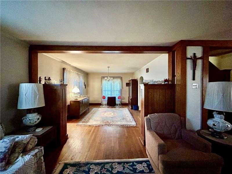 Lovely Swissvale home filled with original character & timeless details! Enclosed front porch with brick wall leads to a formal living room featuring hardwood flooring & a decorative fireplace. Formal dining room offers built-ins & beautiful woodwork. Kitchen includes access to a covered rear porch overlooking the level backyard. Upstairs features 3 spacious bedrooms & a large main bath with classic claw-foot tub. Stunning stained-glass window accents the stairway. Off-street parking available from alley access. Convenient location near private school, playground, shopping & public transportation!