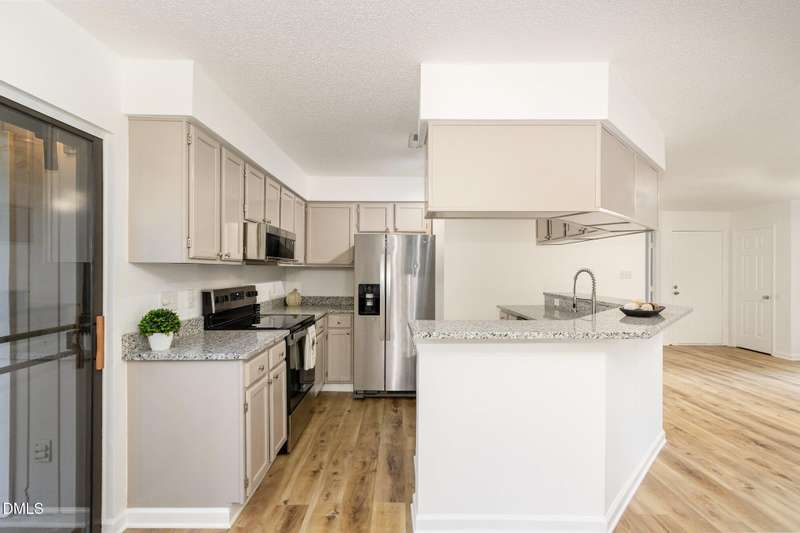 Don't miss this lovely first-floor move-in-ready condo in a highly sought-after Cary location. This 2-bedroom/2-full-bath unit features brand-new stainless steel appliances, granite countertops, stylish lighting, fresh paint, and beautiful new LVP floors throughout the home. Spacious primary bedroom with an ensuite featuring a walk-in closet with a brand-new walk-in shower and a private patio area to enjoy your morning coffee. Great layout with ample closet space, storage, and in-unit laundry. Access to the Farmington Woods greenway right outside your front door. Dues include water, sewer, and garbage. Walk to Trader Joe's, Barnes & Noble, Starbucks, and several restaurants, all while being less than 2 miles from downtown Cary, with access to US1 and I-40.