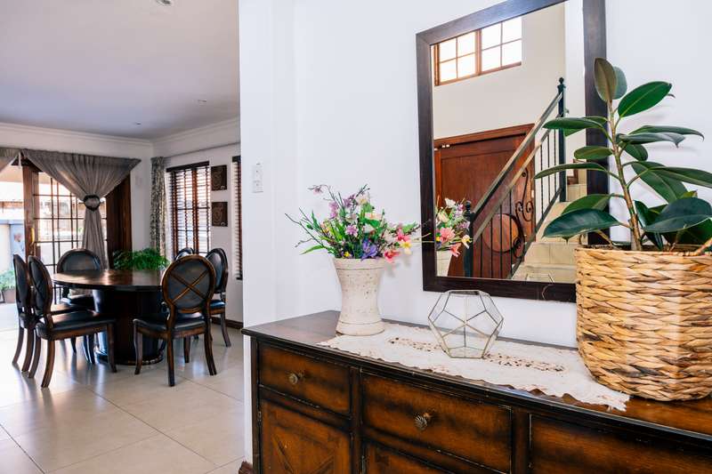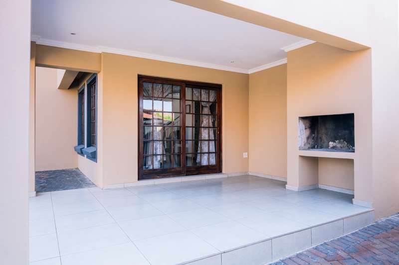 This beautiful full-title home is nestled in a secure and sought-after complex, offering the perfect blend of privacy and community living. The property exudes charm with its well-manicured garden, lush greenery, and a welcoming front facade. Inside, the home is meticulously maintained, boasting spacious living areas that are bathed in natural light. The modern kitchen, complete with high-quality finishes, seamlessly flows into the open-plan dining and lounge areas, creating an inviting space for family gatherings or entertaining guests. The bedrooms are generously sized, with the master suite offering a private retreat featuring a luxurious en-suite bathroom. Additional features include ample storage, a double garage, outside braai area . This home is perfect for those seeking a tranquil lifestyle within a vibrant and well-managed community.