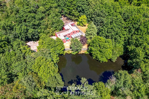 Outside, a landscaped garden surrounds the house, offering several terraces and different atmospheres. The 1800 sqm pond and the maintained forest with a walk, several picnic or rest areas and a chalet with a terrace complete this ensemble, creating a peaceful and natural living environment. The property is located in La Roche-sur-Yon.