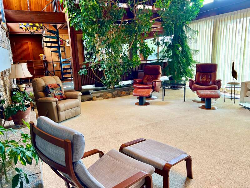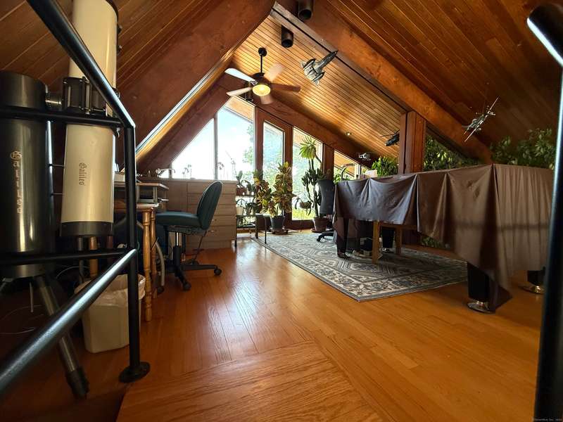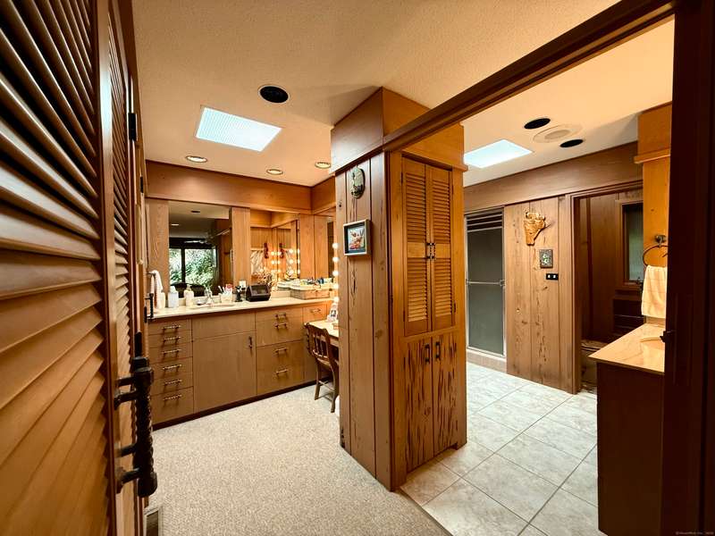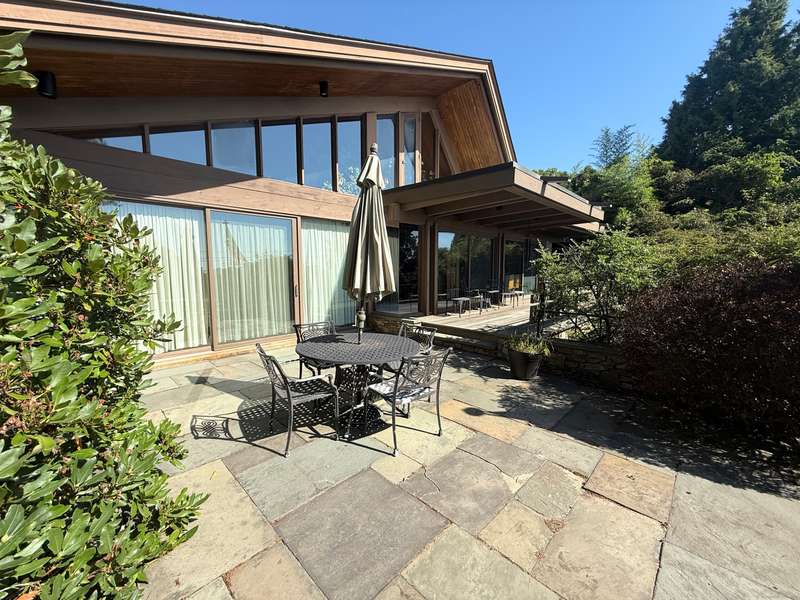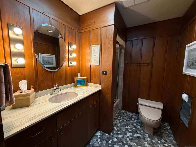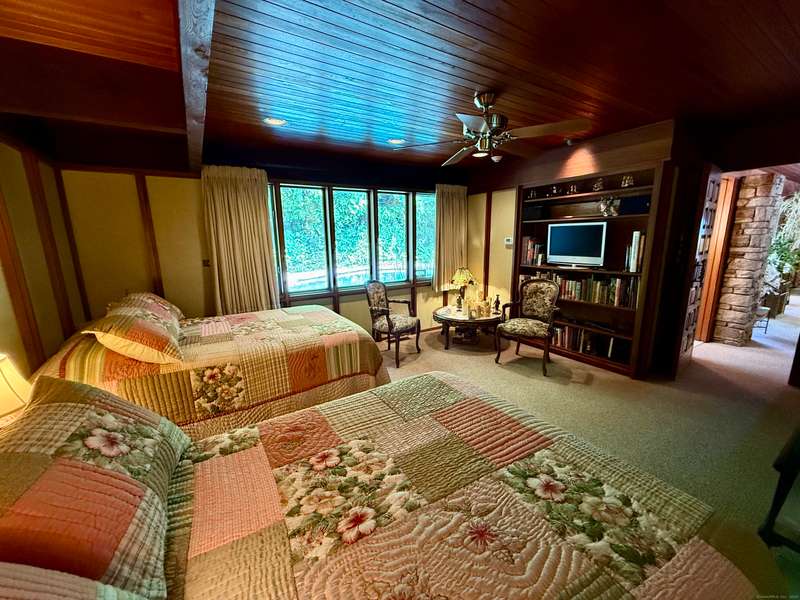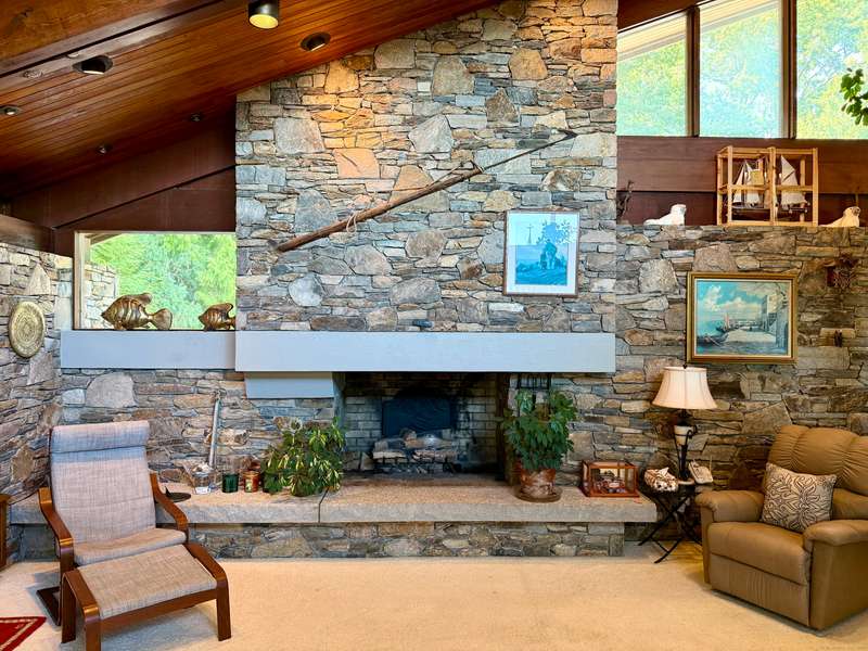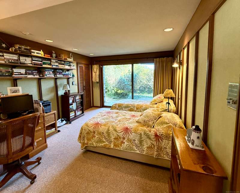 AMAZING WATERFRONT CUSTOM BUILT HOME WITH BEAUTIFUL POOL AND PRIVATE BEACH. This unique mid-century waterfront home designed by renowned architect Vincent Amore is nestled on a peaceful park-like setting that is surrounded by mature trees and adorned with a tranquil in-ground pool. This truly exceptional one-of-a-kind custom built home is in the Prairie style, reminiscent of Frank Lloyd Wright. It offers three en-suite bedrooms, four full bathrooms, a finished walk-out lower level and a wonderful loft with incredible water views. It offers 3435sf on .66 private acres and is beautifully positioned with unobstructed views of New London Ledge Light, Fishers Island and Long Island Sound. Every room has a "water view" with windows facing either the ocean or the pool. The sides facing neighboring properties are illuminated with clerestory windows creating a very private and secluded setting. The interior and exterior merge seamlessly featuring a marriage of glass, stone and shiplap. This pro