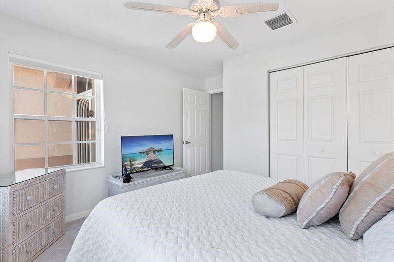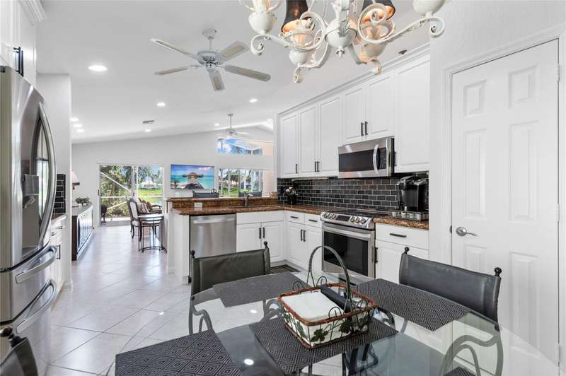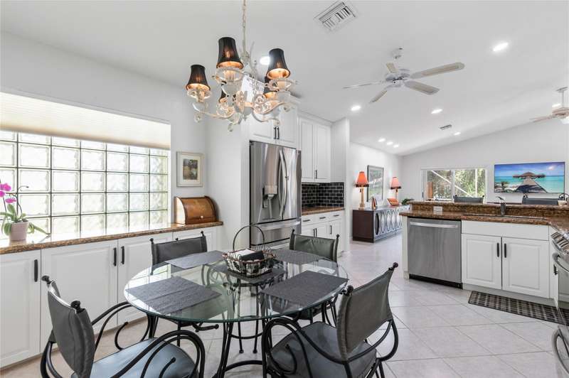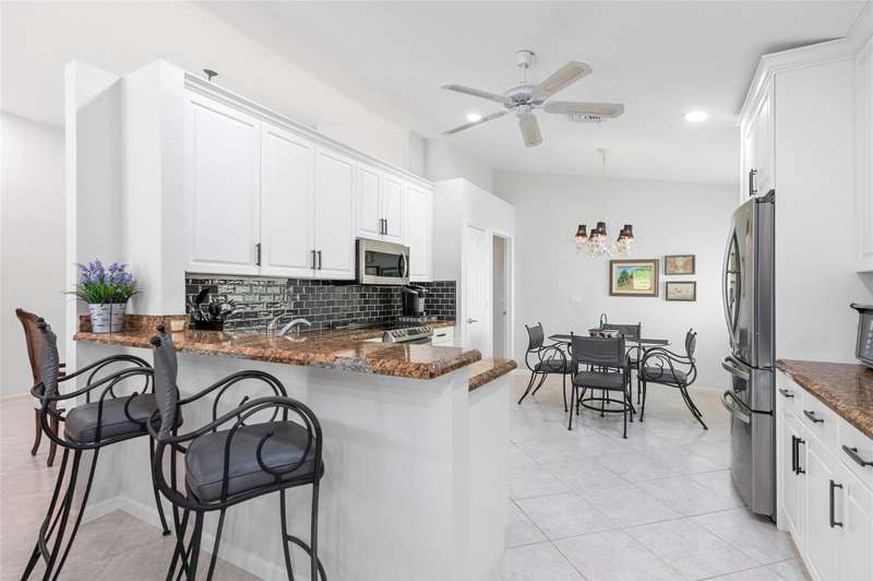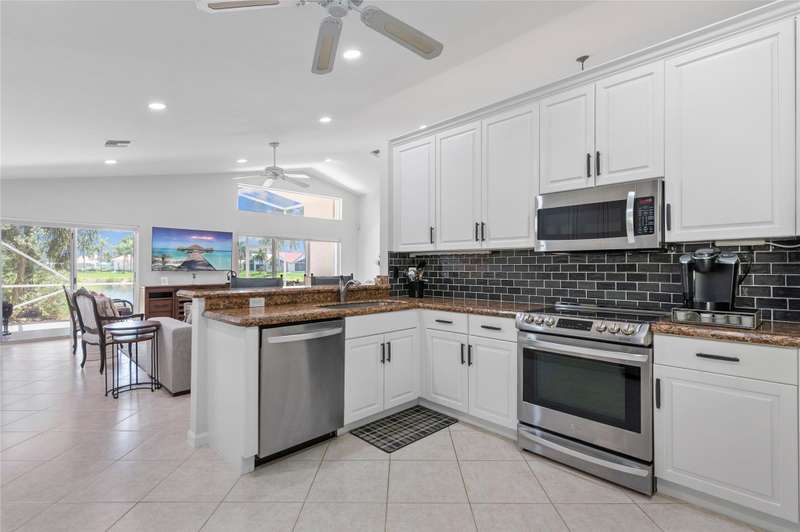 Discover this beautifully maintained, one-owner home offering 3 bedrooms and 2 bathrooms in the serene, sought-after community of Crescent Lakes. This move-in-ready residence showcases numerous upgrades, including hard surface flooring throughout, a modern kitchen and bathrooms with stainless steel appliances, and a recently replaced roof. Enjoy peace of mind with a newer HVAC system, water heater, and full hurricane protection. The home is bathed in natural light and features a spacious, screened-in patio with breathtaking lake views, ideal for morning coffee or entertaining guests. Located in a quiet, meticulously kept neighborhood, Crescent Lakes offers low HOA fees and resort-style amenities such as clay tennis courts, a sparkling pool, and an active clubhouse.