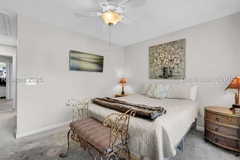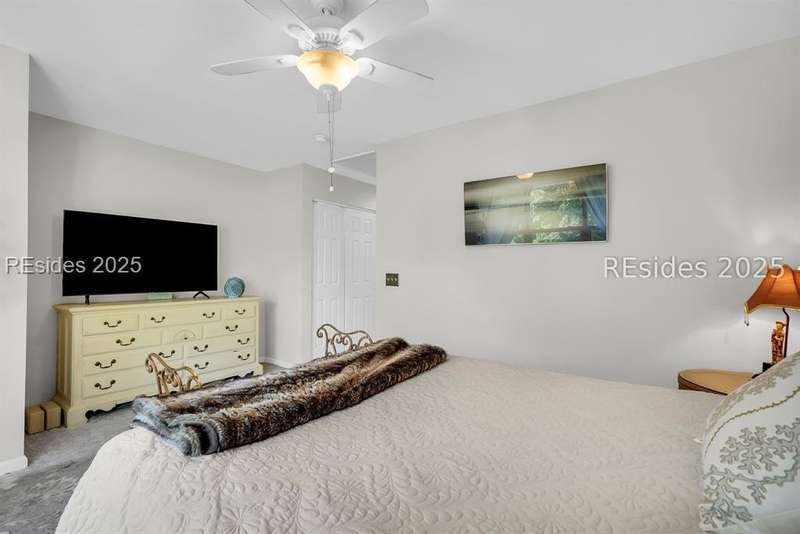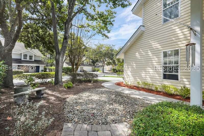 Discover the perfect low-maintenance retreat just a short golf cart ride away from the heart of Old Town Bluffton, where local shops, restaurants, and festivals await. Tucked quietly at the end of a peaceful cul-de-sac, this beautifully maintained 3-bedroom, 2.5-bathroom home offers both privacy and convenience with serene lake views and a premier location. Step inside to find soaring ceilings in the living room that create an open and airy feel, filling the space with natural light. The renovated kitchen features modern finishes, stainless steel appliances, a gas range, and ample counter space ideal for everyday living or entertaining guests. The spacious primary suite provides a relaxing escape, while two additional bedrooms offer flexibility for guests or a home office. Outside, enjoy your morning coffee or evening cocktail on the patio overlooking the lake, surrounded by nature and Lowcountry charm. A two-car attached garage offers plenty of storage for vehicles, golf carts, or beach gear. With its ideal location and easy-care design, this home blends comfort, style, and convenience, making it a rare find in one of Bluffton's most sought-after areas.