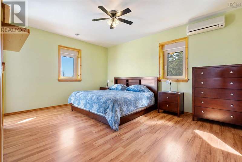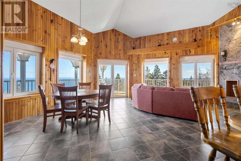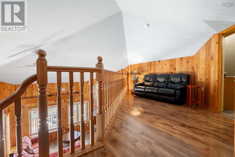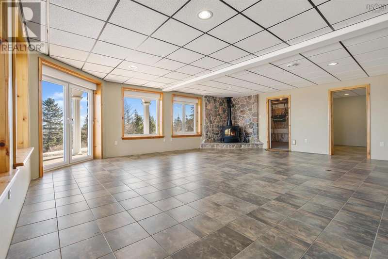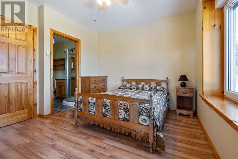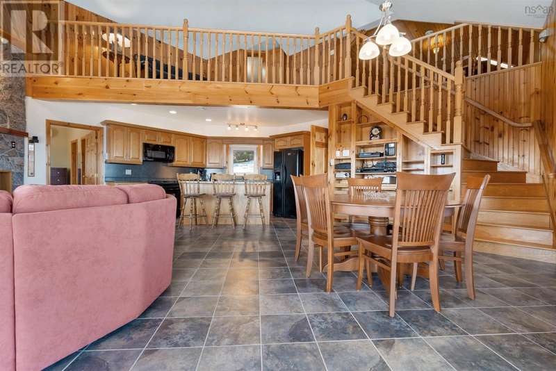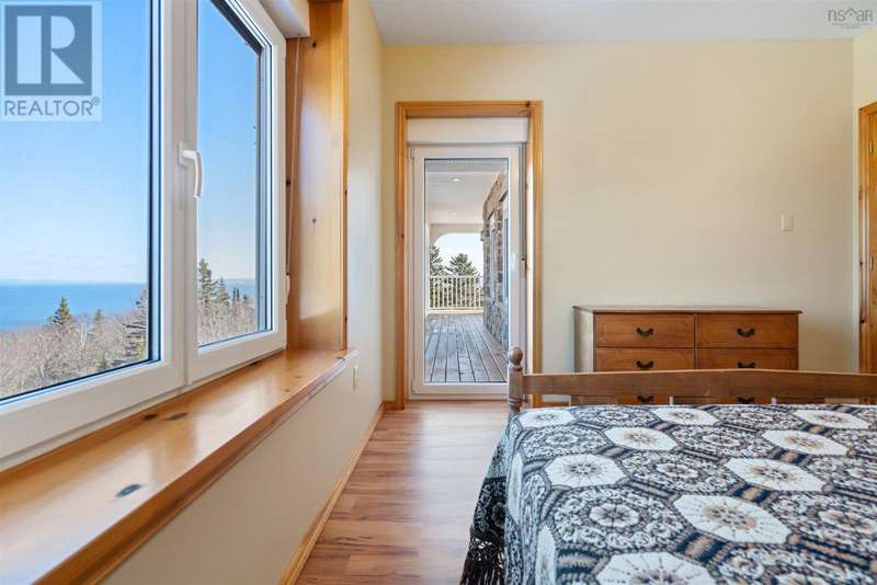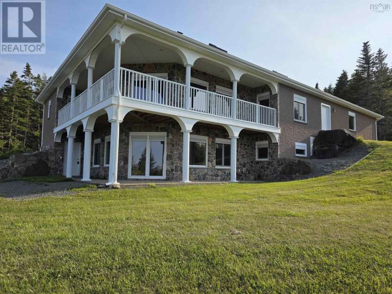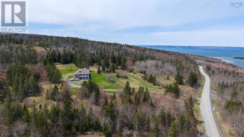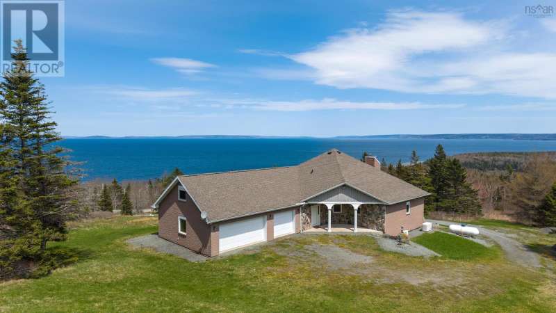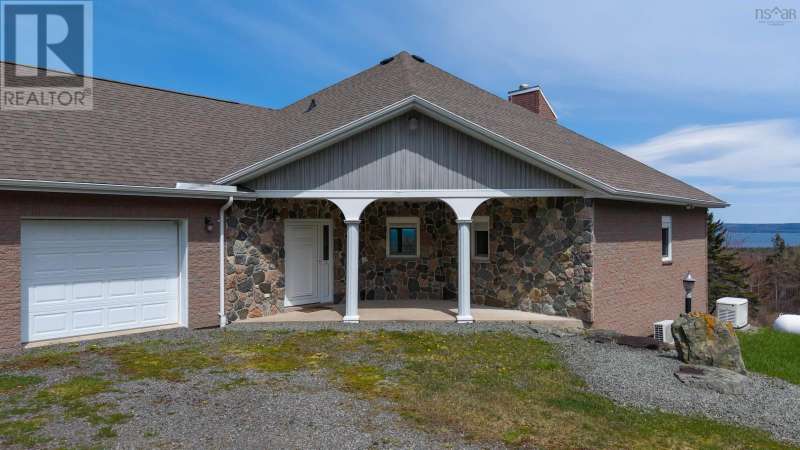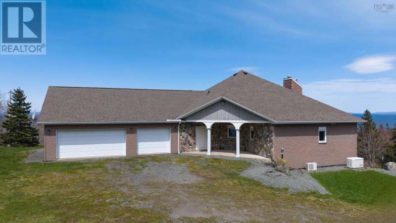 Spectacular lake view retreat with panoramic Bras d'Or Lake views. This extraordinary 4-bedroom, 3.5-bathroom custom residence is set on 178 acres of woodland. This 3,331 sq. ft. home offers unparalleled craftsmanship and breathtaking views of the world-famous Bras d'Or Lake. Built with state-of-the-art Insulated Concrete Form (ICF) construction, this residence delivers superior energy efficiency, soundproofing, and structural integrity. The striking exterior showcases meticulously hand-laid granite and sandstone complemented by stylish stacking brick. Every detail has been thoughtfully curated to create a home of exceptional quality and aesthetic appeal. The main level boasts an open-concept living area with cathedral ceilings and a magnificent stone fireplace centrepiece. The architectural design features windows positioned to frame the breathtaking lake views from multiple angles, while patio doors lead to a panoramic balcony. Throughout the home, the windows are equipped with high-quality built-in exterior room darkening blinds, providing light control and privacy when desired. The upper level features a loft overlooking the main living space, plus a spacious primary bedroom and versatile additional room. The fully finished walkout basement includes a recreation room with wood stove, beautifully crafted stone wall and hearth, and patio access. Premium features include in-floor heating (basement and main level), heated 26'×32' attached garage with 16' and 9' doors and Generac propane generator for uninterrupted power. Set on diverse woodland, this property offers the perfect balance of privacy and accessibility while capturing unobstructed lake views. This amazing residence must be viewed in person to truly appreciate the exceptional craftsmanship throughout. (id:2494)