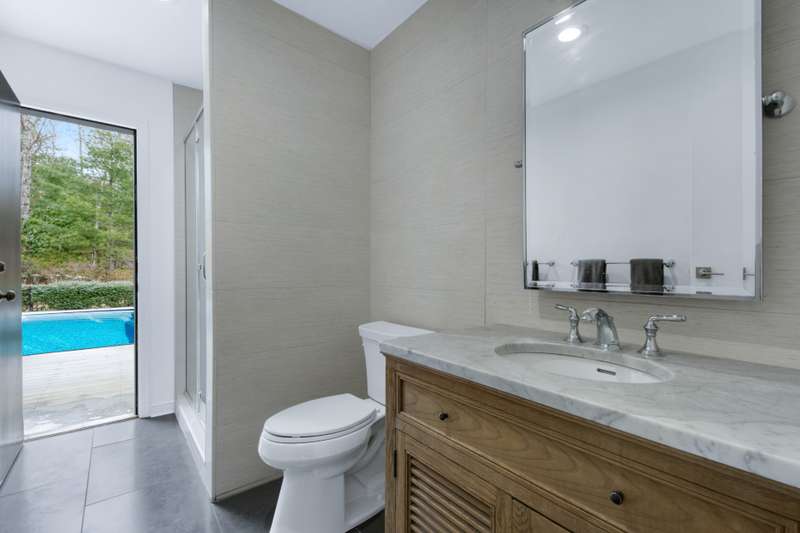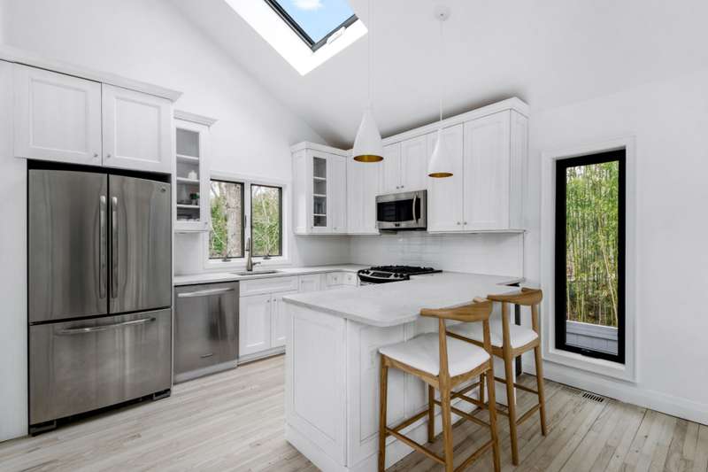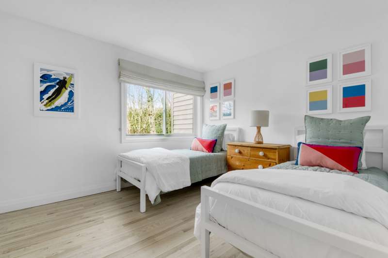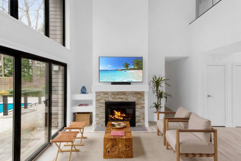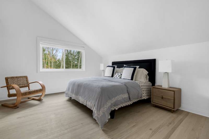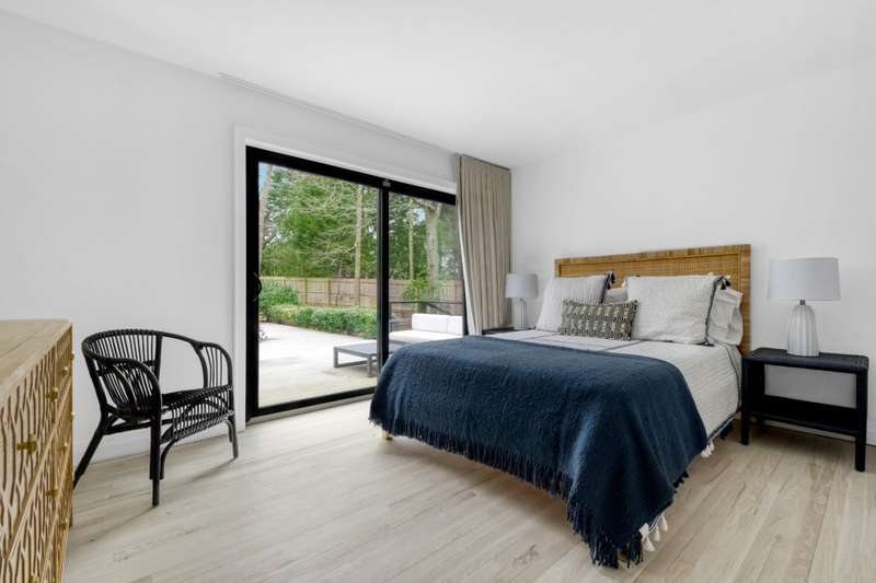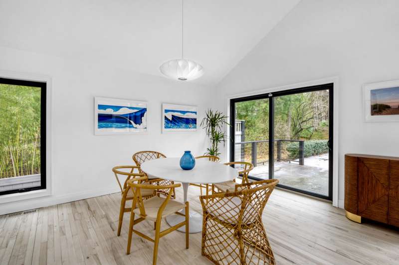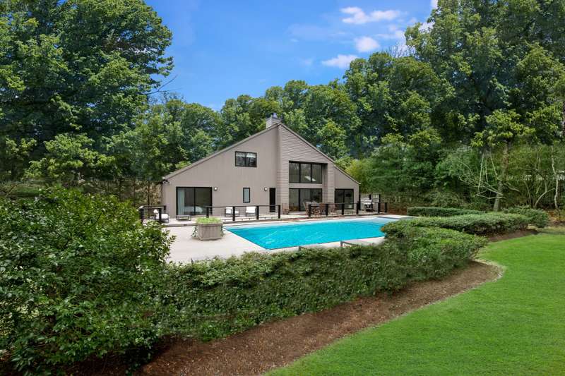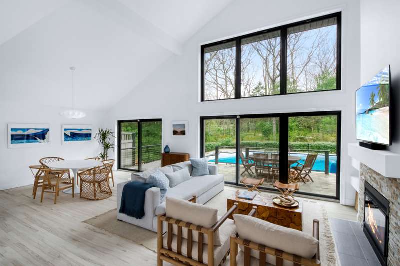 Rental Reg. # 24-144. Located just moments away from Gardiners Bay, Three Mile Harbor and Sammys Beach, this wonderful 2100 sq ft contemporary home, set on a shy acre, is the perfect summer retreat. Upon entry, you are welcomed into a brilliant living and dining space with soaring ceilings, a wall of windows and sliders that lead to the backyard. A wood-burning fireplace centers the expansive room. The adjacent open-style kitchen offers a seamless gathering space for entertaining. The main level includes three guest bedrooms and two full baths. The primary bedroom is located on the second level and features a cathedral ceiling and large ensuite bath. The back of the property boasts a 20 x 40' heated pool surrounded by decking and a lushly landscaped yard.Listing ID: 887357