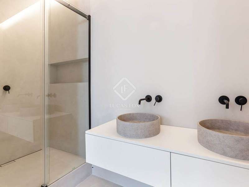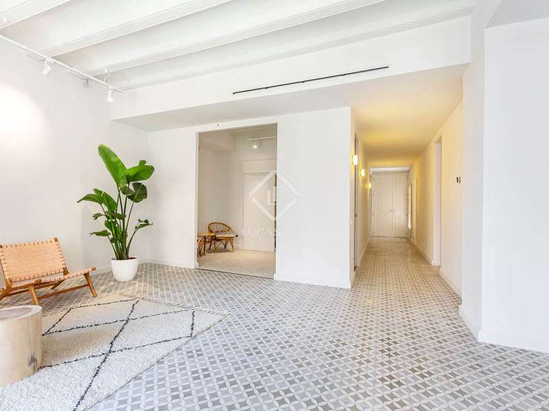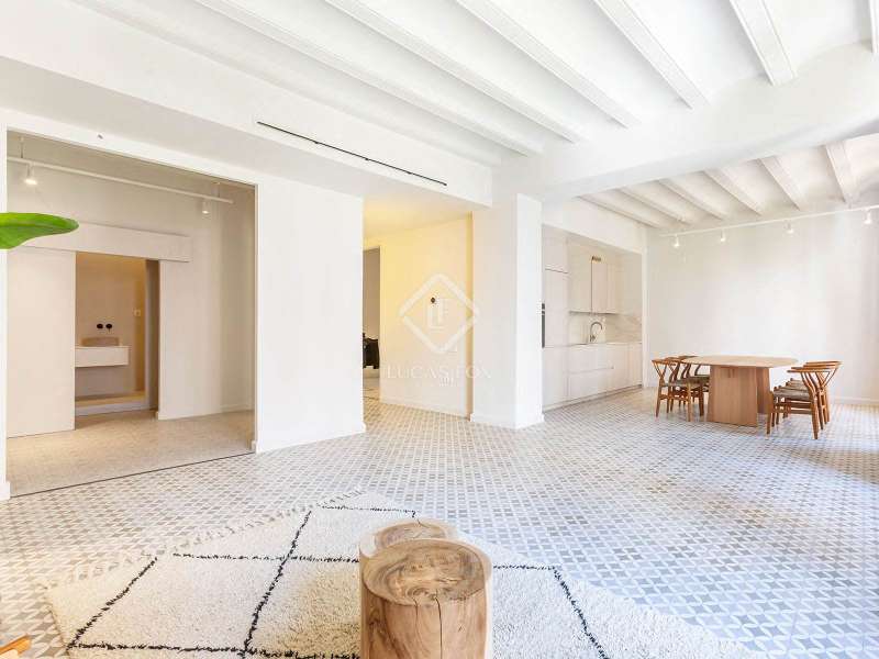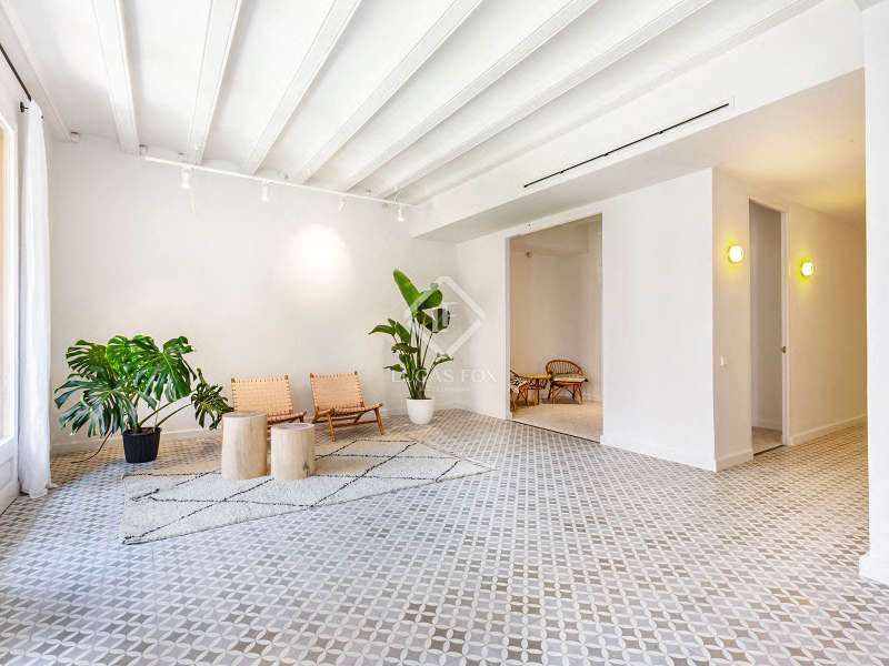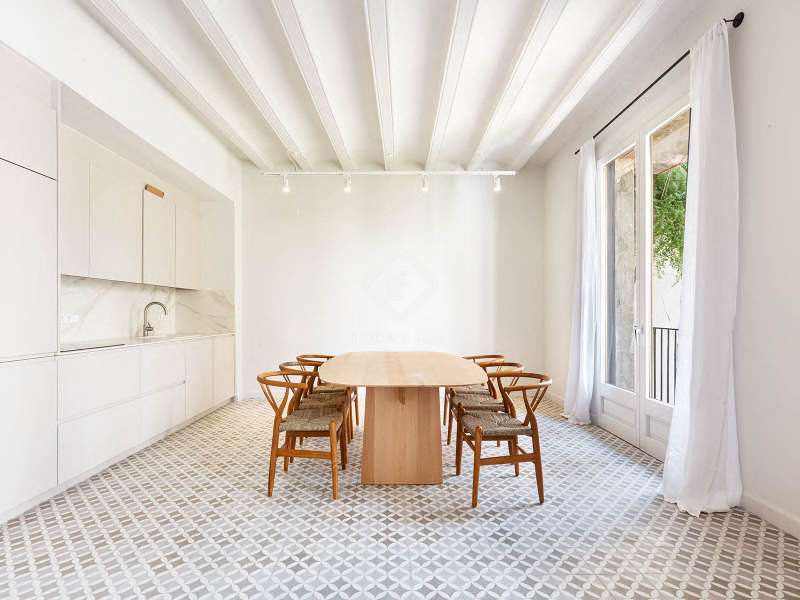 We present this magnificent renovated 133 m² property located in the northern part of the iconic Born neighbourhood , bordering the Eixample Right. In addition to being located in a classic Barcelona building , this apartment combines the charm of original features, such as exposed wooden beams, with high-quality modern finishes. The property includes three double bedrooms, each with an en-suite bathroom for added comfort and privacy. The third bedroom—off the living room—can also function as an study or work area, adapting to different lifestyles. The property orientation toward a large and quiet courtyard guarantees a tranquility rare in the city centre . The large dining room living room opens onto a modern open kitchen equipped with integrated appliances , perfect for both everyday use and entertaining. The ducted central air conditioning system provides both heating and air conditioning. The exterior woodwork is new and offers excellent thermal and acoustic insulation. The property has a 7 m² balcony, ideal for enjoying the outdoors. It also has access to a pleasant communal rooftop terrace. Although the building doesn't have an elevator, an approved project for its installation has been approved, which will further increase the property's value.