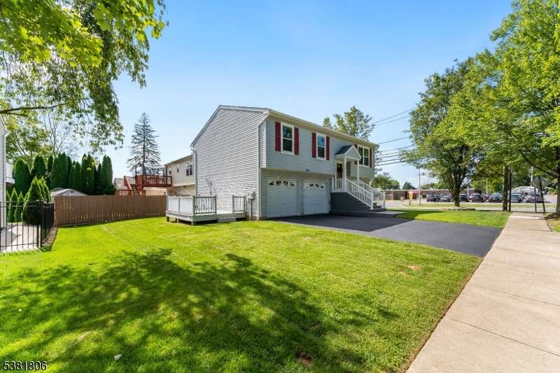 Welcome to this well-maintained home offering 3 bedrooms and 3 full bathrooms on a desirable corner lot. The spacious eat-in kitchen features oak cabinetry and plenty of room for gathering. The primary bedroom includes a private en-suite bathroom, while 2 additional bedrooms provide comfort and flexibility. All appliances, including a deep freezer, remain with the home. The lower level boasts a large recreation room with a full bath, perfect for relaxing or entertaining. Additional highlights include pull-down attic access for extra storage and over-sized 2-car garage with electric openers. A composite side deck extends your living space outdoors. Major updates provide peace of mind: roof, hot water heater, and furnace were replaced just 5 years ago; A/C replaced 8 years ago. A whole-house generator ensures year-round security, and a one-year home warranty is included for added confidence. With all public utilities and an ideal location just minutes to commuter routes and everyday conveniences. This home is move-in ready and waiting for you!