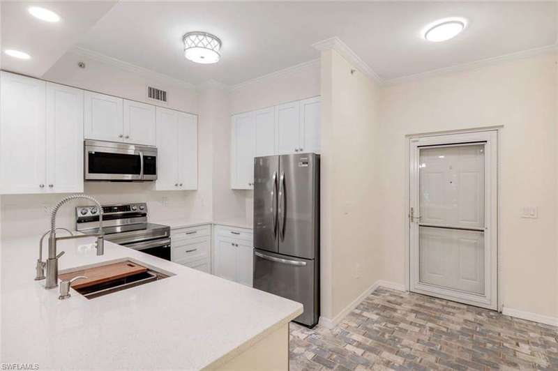 Best Located Unit in the Complex | Prime Location | Designer Upgrades | 1-Year Home Warranty Welcome to the premier first-floor end unit in one of Fort Myers' most desirable gated communities. This residence offers unmatched convenience and luxury, featuring one of the few private garages positioned directly in front of the front door-plus the closest assigned additional parking space in the entire complex. With no stairs to climb, everyday living is effortless. Step inside to a custom-designed kitchen showcasing extended quartz countertops, upgraded cabinetry, and modern finishes-perfect for entertaining or everyday living. The stove features advanced cooking modes, including Air Fryer Mode, and every appliance has been carefully selected for both style and performance. The home has been meticulously maintained, with a newer upgraded 16 SEER A/C unit, newer appliances, and plush upgraded carpeting in the bedrooms. Enjoy peaceful mornings or relaxing evenings on your very private patio, tucked away for ultimate serenity. Positioned toward the back of the community, this unit provides added tranquility away from main roads, while remaining just steps from the mailbox and pool amenities-the ideal blend of privacy and convenience. Built in 2014, this residence is move-in ready and offers the peace of mind of no required flood insurance. For added value, the seller is including a 1-year appliance warranty. The community is vibrant and amenity-rich, featuring a resort-style pool and hot tub, clubhouse, fitness center, and tennis and pickleball courts, with events and activities year-round. Ideally located just minutes from Downtown Fort Myers, and surrounded by shopping, dining, and everyday conveniences, this property is perfect for both seasonal enjoyment or full-time Florida living. Whether you're seeking a primary residence or a luxury vacation retreat, this is the one you've been waiting for.