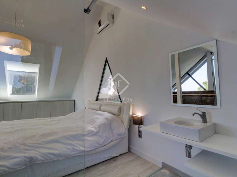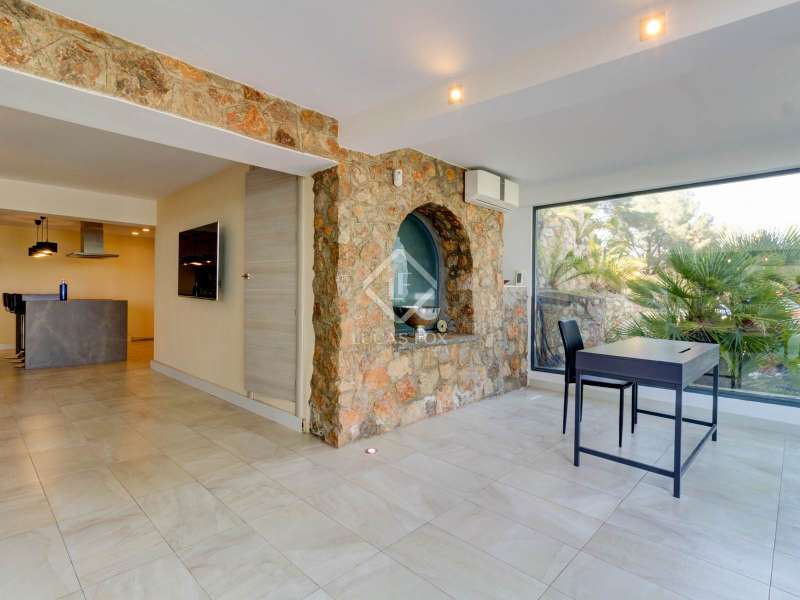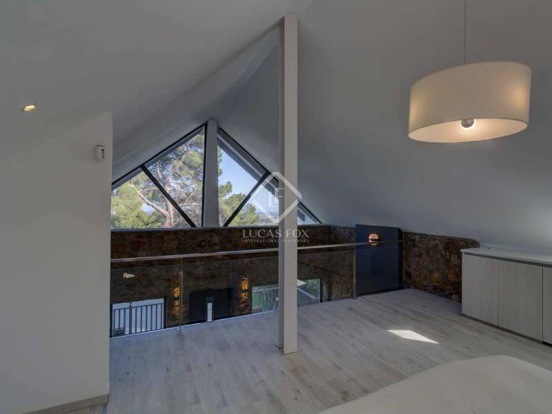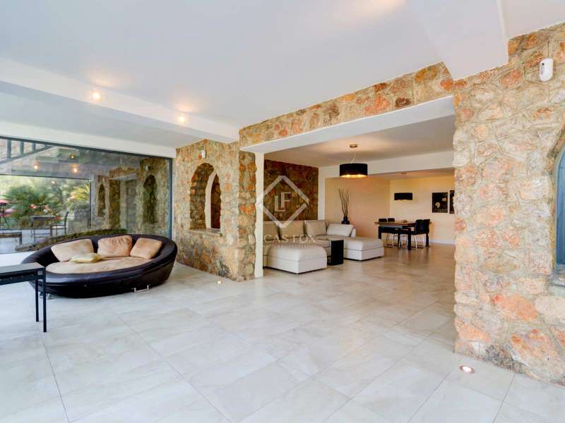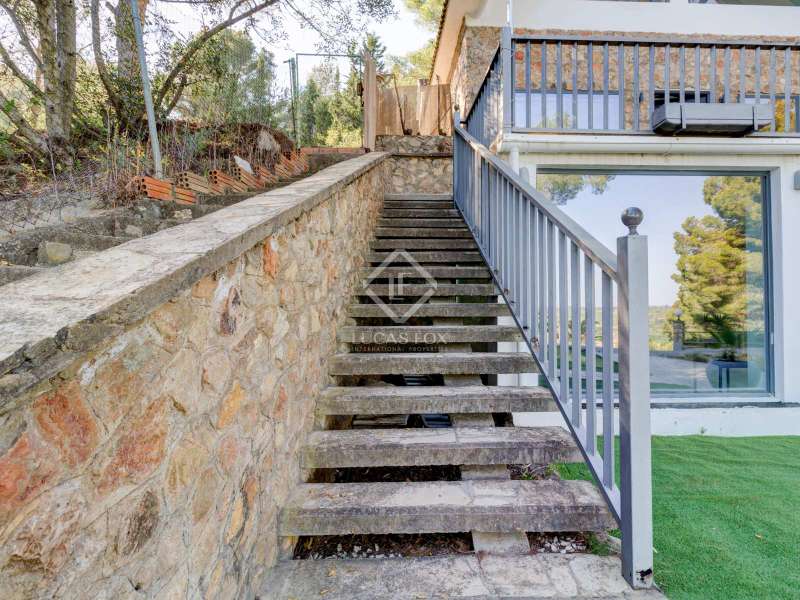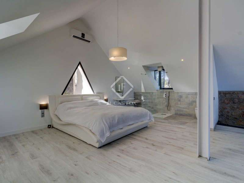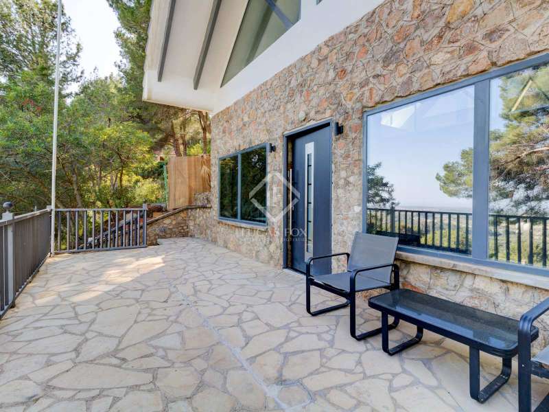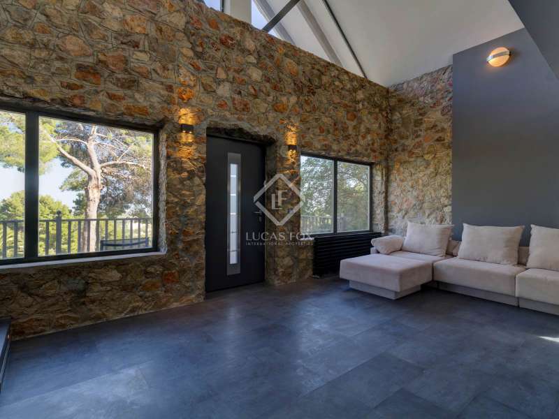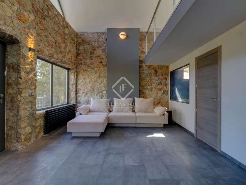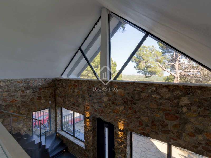 Lucas Fox presents this countryside house with a large plot and views of the surrounding natural environment, near Reus and Tarragona. This extraordinary property is distributed over five large levels that ascend the side of a hill, from the access road, to the forest located in the highest area. La Finca is accessed through a majestic motorized gate that gives access to an elegant palm tree walk that leads to the main house. The house, completely refurbished and modernized, has three floors. On the ground floor, crossing a large glass door , we find a large room divided by a stone arch. In the space between the door and the divider, an area currently occupied by a study and a relaxation area opens up. Crossing the arch you access a living-dining room with an open kitchen and annex to this room, there is a bathroom and a pantry room, machines and laundry room. Via an exterior staircase, we access the first floor with a large terrace with a viewpoint. Behind an armored door, you access a living room- hall with two doors that lead to a large bedroom that was unified by eliminating the dividing wall. This floor is completed with a bathroom with exterior ventilation and a group of closets that take advantage of a space under the stairs. From the hall, a staircase leads to an open loft on the second floor, with impressive views, where the main bedroom with its private bathroom is located, completely open to the bedroom area, with natural lighting and ventilation. At this same height, there is a natural terrace, in a pine forest, which is used as a summer cinema. From the front of the house, a large terrace opens on which we find the parking area, a summer dining room , a barbecue and some benches in front of the railing that limits this area. Next to the benches, a descending staircase takes us to the lower floor where the pool is located, a chill-out area, a gazebo and a guest house with a living-dining room, separate bedroom and bathroom . Finally, it is completed with a domosphere that acts as an annex bedroom to enjoy the summer nights. From here, we continue descending gently and find an area full of fruit trees such as mandarin, orange, lemon, almond and olive trees. At the northeast end of the property, there is a small building, with the renovation pending completion, which can be used as another area for guests. A magnificent opportunity to acquire a wonderful countryside house and enjoy long days of rest in a natural and quiet environment.