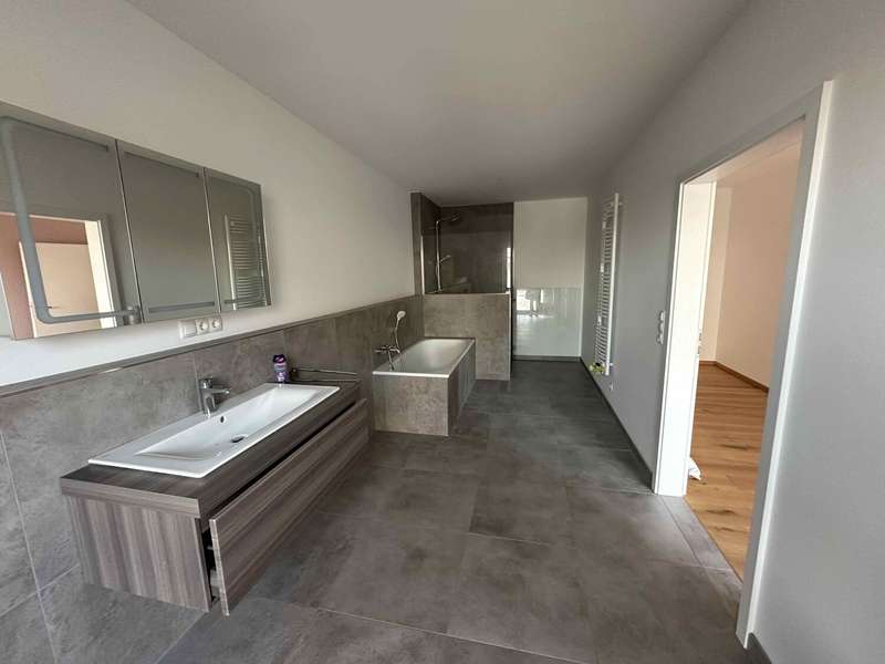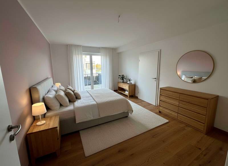 This modern apartment is located in the heart of the Lüneburg Heath, in a popular residential area of the town of Schneverdingen. The apartment is available from 1.1.2026. The property complex was built in 2020, the apartment on offer is located on the 1st floor, is accessible by elevator and is one of eleven exclusive and modern apartments in the building. This apartment was completed around 2022. You can expect a well-kept and friendly neighborhood. This apartment is handicapped accessible and suitable for wheelchair users. The layout of the apartment offers a spacious floor plan, plenty of natural light through floor-to-ceiling windows, a large shower room with natural light and a large balcony. The apartment is equipped with a high-quality fitted kitchen (steam cooker, dishwasher, oven, fridge, freezer, induction hob). The floor in the living and sleeping area is covered with oak real wood parquet. The bathroom is equipped with a bathtub and a shower and offers plenty of space to feel good. All windows are fitted with external blinds and pleated blinds from the inside. The property is located close to the center of Schneverdingen. The property is located in the west of the heath town and is approx. 900 m from the town center. Please feel free to arrange a viewing appointment.