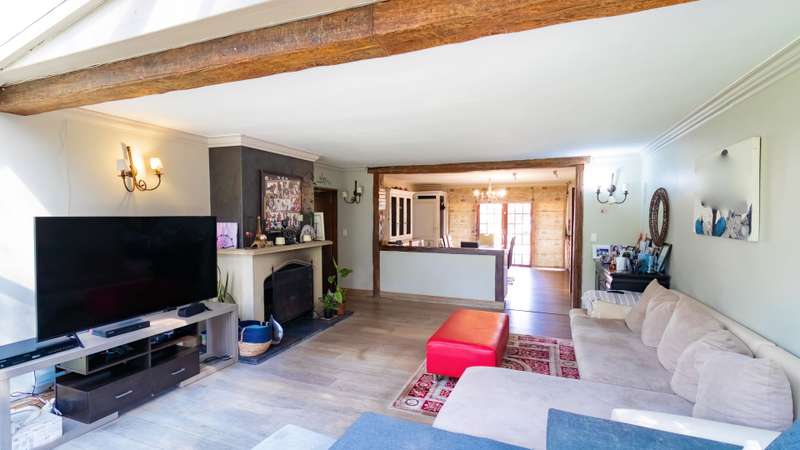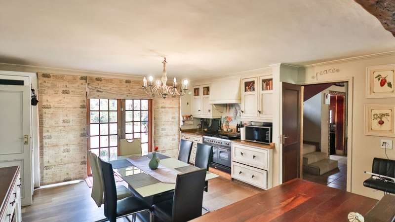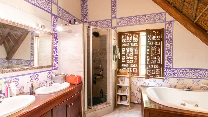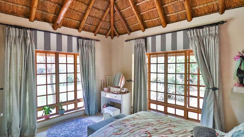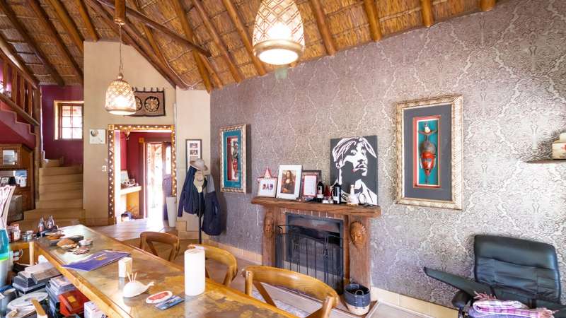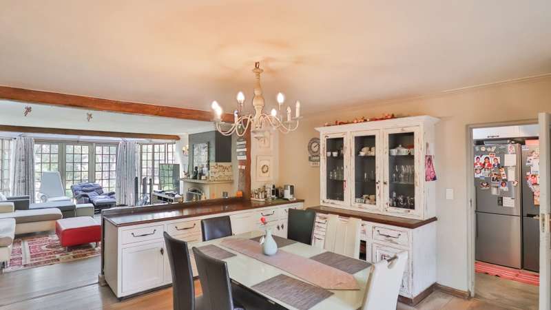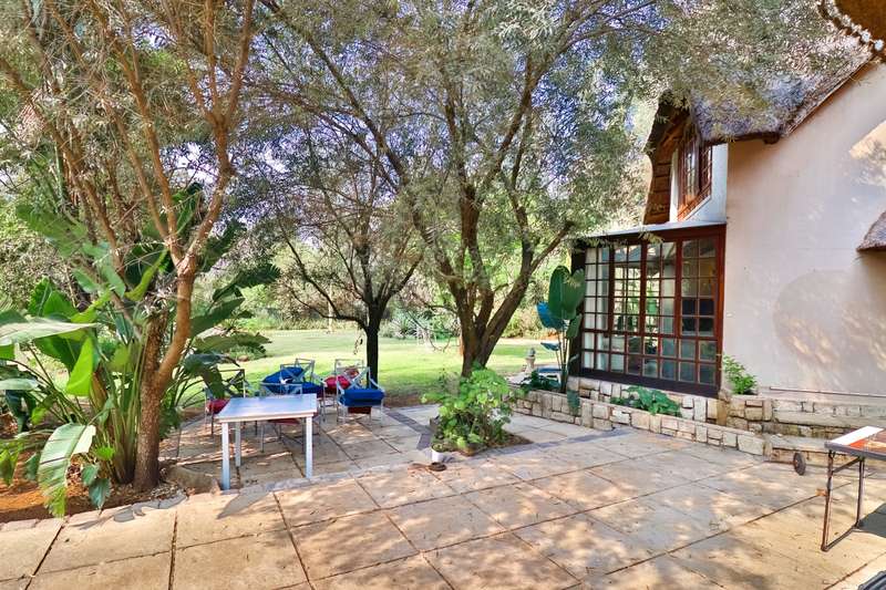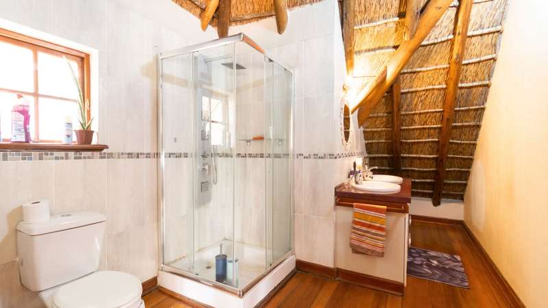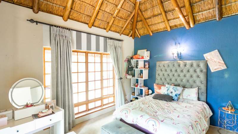Bank Assisted Sale This lovely characteristic country-style home offers privacy and security and is tucked away down a pan-handle in a peaceful, secluded setting. Beautifully crafted, it offers the perfect blend of rustic farm-style charm and modern convenience. Designed to embrace indoor-outdoor living, the home showcases natural materials and expansive glasswork to create an atmosphere of light and warmth. Step through solid wooden doors with stained-glass detailing into spacious open-plan living areas, thoughtfully designed for both relaxation and entertaining. A dedicated entertainment wing features a built-in bar, wood-burning fireplace, and flows seamlessly onto a large undercover patio looking over the pool and landscaped tropical garden. Perfect for year-round gatherings with friends and family. The lounge area has lovely wooden floors. The sunny living room invites comfort with its bay windows, French stacking doors, and another cozy fireplace and a big skylight. At the heart of the home lies the country-style kitchen, complete with ILVE double oven, big gas stove, stone countertops, a generous scullery with prep sink, and space for three appliances. A generous room off the kitchen can serve as a studio, home office or similar. Upstairs, the expansive main suite includes a luxurious full bathroom with double vanity, a private study area, and a large walk-in closet. An adjoining room provides additional flexibility — ideal as a nursery, dressing room, or second office. A third bedroom with its own entrance and private bathroom (with double basin and walk-in shower) offers excellent potential for a guest suite or independent living. Downstairs, two more well-appointed bedrooms share a unique full bathroom. A separate, spacious cabin with private access provides endless opportunities — whether as an art space, home gym, or guest cottage. Additional Features include: Borehole and water tanks Chlorine swimming pool with heat pump Solar geyser Landscaped garden with computerized irrigation Staff accommodation Three covered carports State-of-the-art security: alarm system, CCTV, electronic beams, security gate, and automated entrance High-speed WiFi available This thatch home is a blend of thoughtful modern living in a setting of complete serenity. If the buyer goes through the assisting bank, the bond registration fees are discounted by 50%. Disclaimer: Every effort has been made to ensure the accuracy of this brochure. We cannot be held liable for any inadvertent errors or omissions.
