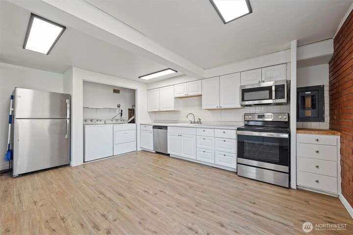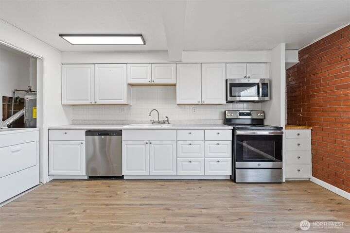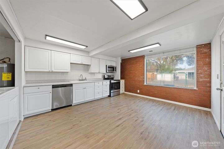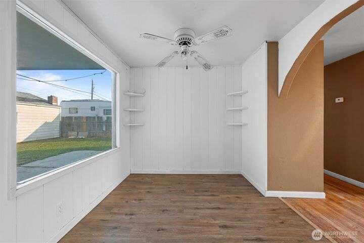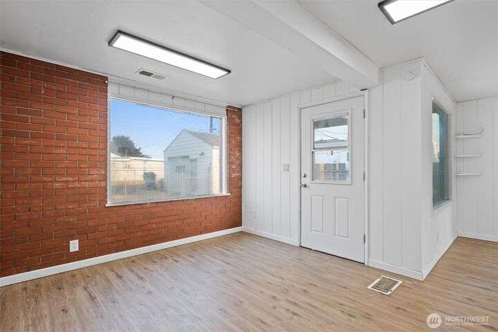 Welcome to this charming 3-bedroom, 1-bath home offering 1,206 sq. ft. of comfortable living space. Inside, you’ll find hardwood floors throughout and a bright kitchen with new cabinets and appliances. Step outside to a fully fenced backyard with a patio—ideal for relaxing or entertaining. A detached garage and off-street parking add extra convenience. With recent updates including a new roof and siding, this home is just waiting for your personal touch.