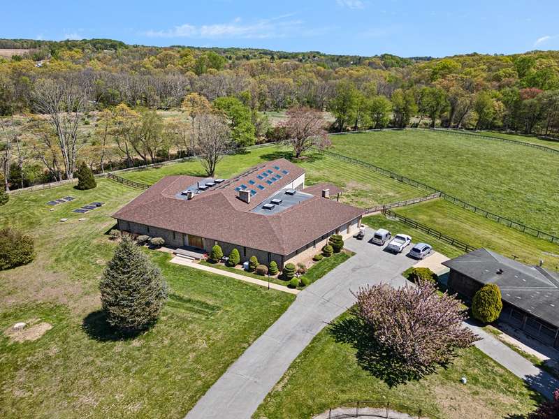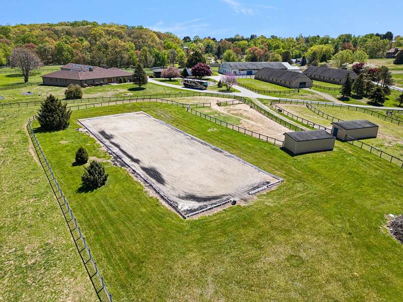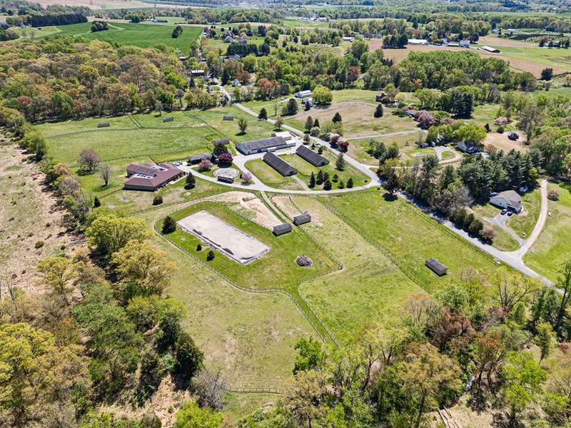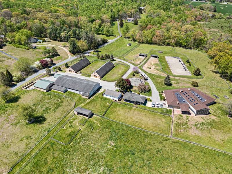 Fair Hill Farm is a lovely 28 acre well designed horse farm located west of the internationally acclaimed equestrian community from which it takes its name. Gently rolling and private on a dead end road the farm possesses 33 stalls in two center aisle barns with foaling stalls, large tack room, and easy access to paddocks and larger fields with water and 7 run-in sheds. Additionally, the farm features an outdoor dressage arena 66 x 198 with sand and rubber footing and a small indoor arena across from the barns. There are several ancillary buildings housing equipment and storage, and covered dog runs near the house. The main home is a 1974 brick one story home of approximately 5000 sq ft. finished featuring 5 bedrooms and 4 ½ baths highlighted by a large incredible enclosed pool room with wood walls and wood cathedral ceiling, hot tub, kitchen, and bath - an unbelievable indoor oasis. Additionally, there is a two bedroom cottage and a 1 bedroom apartment convenient to the barn complex. This farm is a must see for the serious equestrian.