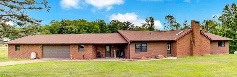 This spacious and updated property is a rare find in Malvern, Ohio! Sitting on 2 acres, this home offers flexibility and smart updates throughout. The main floor includes 3 bedrooms, 1.5 baths, the cathedral beamed ceilings add charm and character to the large living area, and an eat-in kitchen with peninsula. A bonus mudroom/flex room adds potential for office, playroom, or storage. Downstairs, you'll find a large family room, laundry, and an additional full bath?perfect for multi-generational living or entertaining. The garage space is unmatched: an attached 45 car garage, heated, finished, and equipped with a floor drain, plus a 40 X 74 detached outbuilding with electric and a concrete floor. Enjoy easy access to the backyard via three different exits, including a stone patio area off the main living area, kitchen walkout, and back door access?ideal for enjoying the above-ground pool and yard. Less than a mile from Lake Mohawk, a gated community with a 500 acre lake and unlimited horse power. Purchase a vacant lot for lake access and enjoy the best of both worlds! Key updates: Roof, Sky Lights, Furnace, and Central Air (2020); Septic (2018). Also includes woodburner and electric baseboard zone heating. House does have free natural gas, just isn't hooked up to it, but is ran to the house. Don't miss this unique, well-maintained property that offers space, flexibility, and functionality?inside and out!