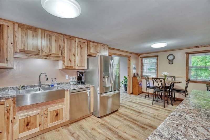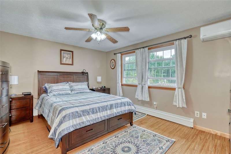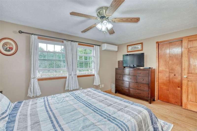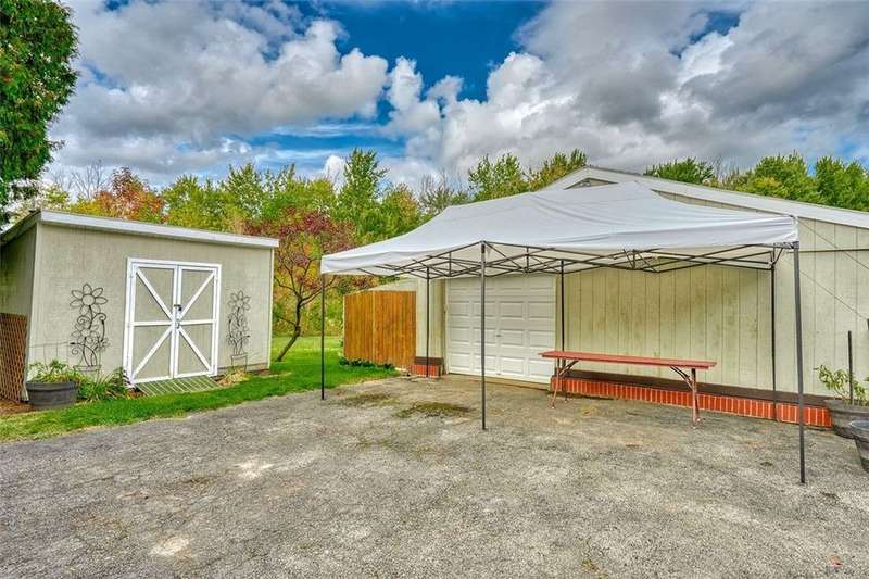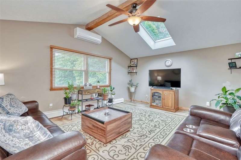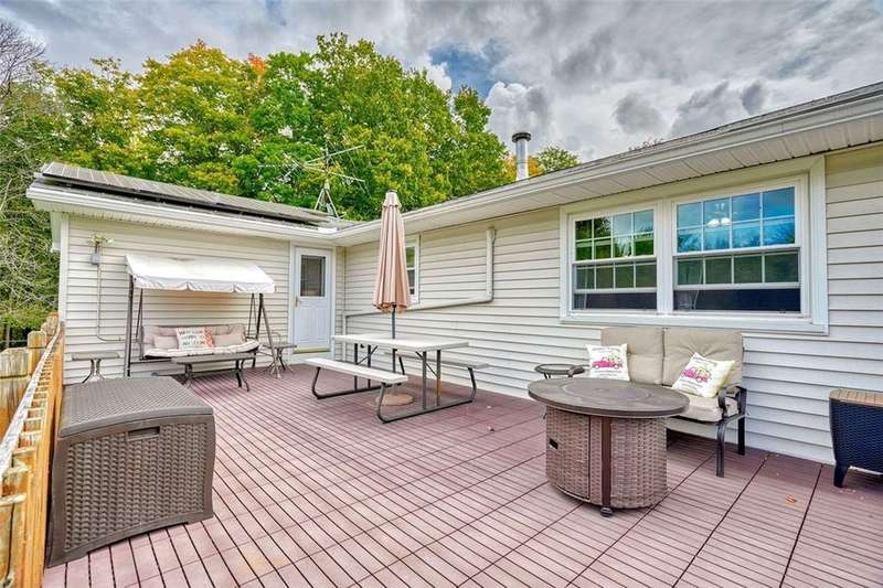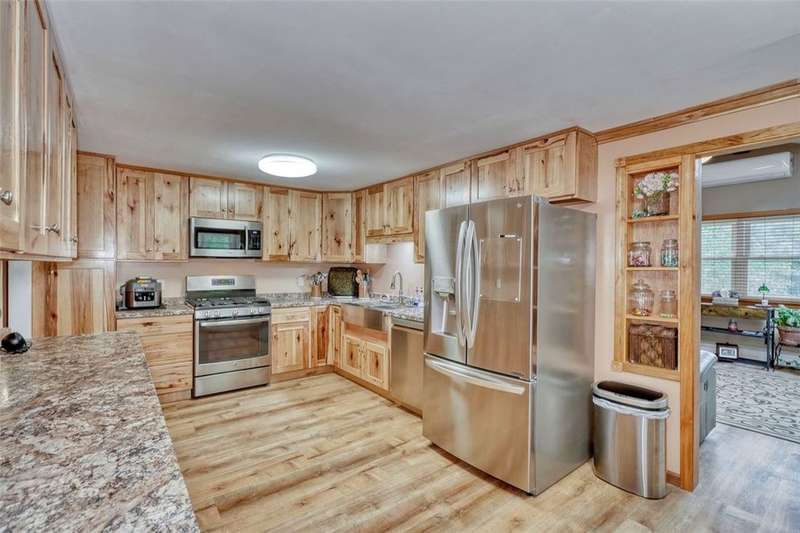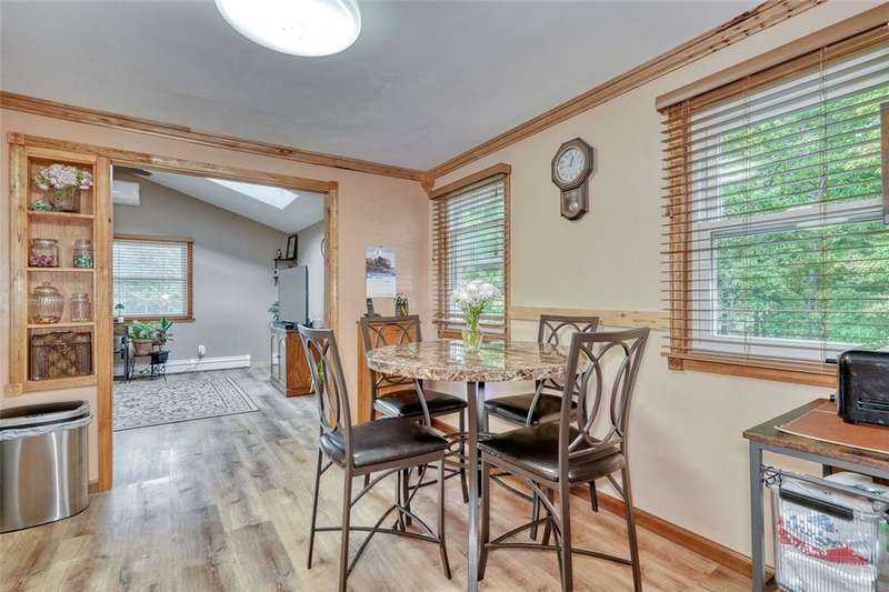 Spacious, beautifully maintained and updated home on 3.5 acres with flexible living options including possible in-law set up! Updates include: Remodeled kitchen with hickory cabinets, pull-outs and soft close doors * Updated baths on both levels * New windows & doors (5 yrs.) * New boiler (2 yrs) with vinyl baseboard covers * Whole house generator (1 yr) * New LVT flooring throughout first floor (completed prior to closing) * On demand hot water tank * Above ground pool (4 yrs) * Solar panels to keep electric bills low * Other highlights include zoned heating, huge family rm / sunroom with cathedral ceiling, skylight & door to large composite deck with patio below, detached garage with 2 workshop/storage rooms & door to chicken coop (garage has it's own electric panel), walk-out lower level with family room featuring a built-in bar with tap, two additional bedrooms, full bath, laundry & 2nd kitchen. Amazing private and serene setting with fenced in play area, gardens, waterfall pond, dog pen & landscaped areas with woods in the rear. Too many features to list - additional notes in attachments ? this is a must see! Delayed negotiations to Wed, 10/1 at 1pm.