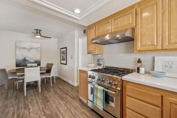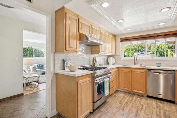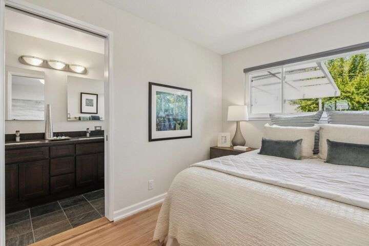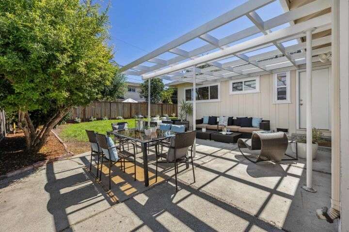 Enjoy effortless indoor/outdoor living at this bright and spacious ranch-style home, graciously updated with contemporary comforts. Located in sought-after Rex Manor, it is just minutes from downtown shopping and dining and offers access to excellent schools. With charming curb appeal, the manicured front yard showcases native plantings and mature trees. Inside, the living areas begin with an elegant living room and flow into an expansive great room that includes an updated, quartz-appointed kitchen, dining area, and family room with fireplace and sliding glass doors to the rear yard. The private 4-bedroom, 2-bath wing is highlighted by a secluded primary suite with a designer bath. Perfect for relaxing and entertaining, the rear yard offers a large pergola-covered dining patio and an expansive lawn with shade tree and perimeter plantings. Completing the appeal of this lovely residence, its close to excellent schools and provides easy access to Silicon Valleys high-tech employers. Welcome home!