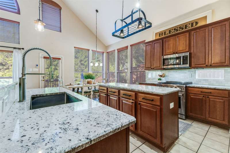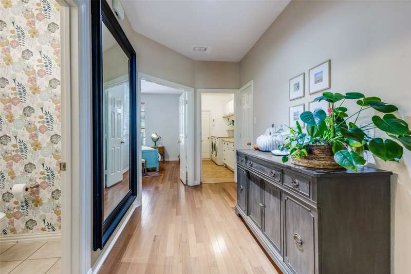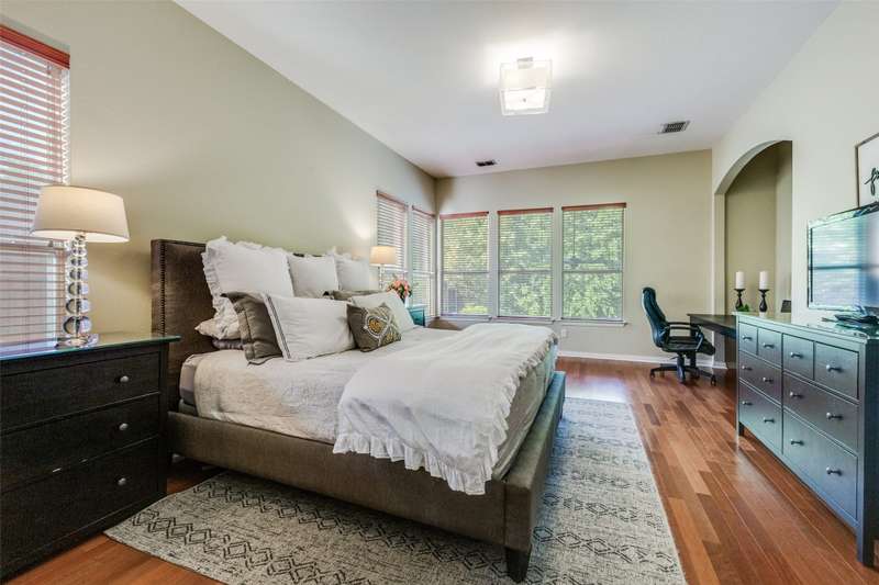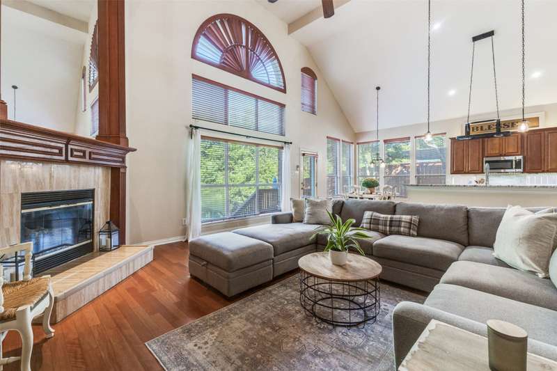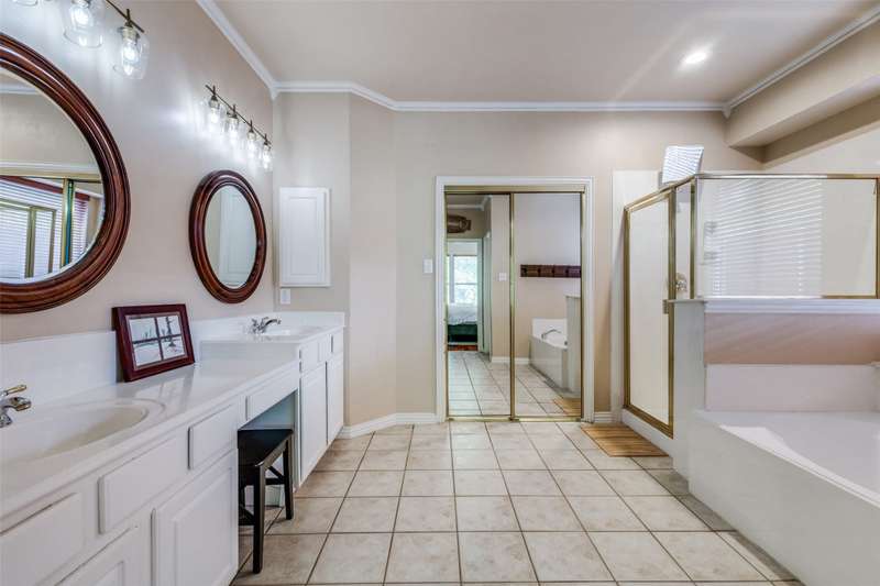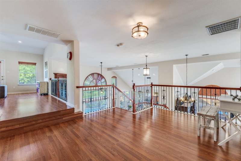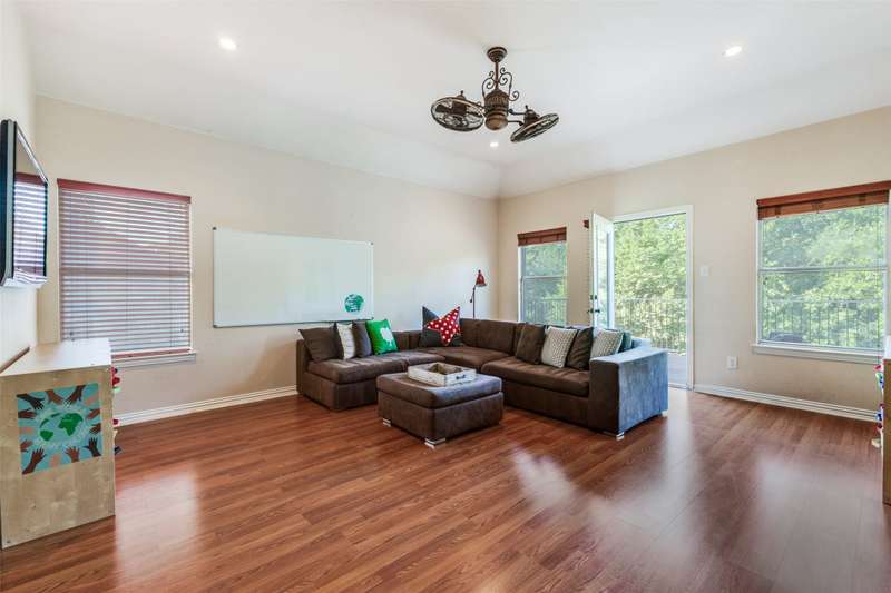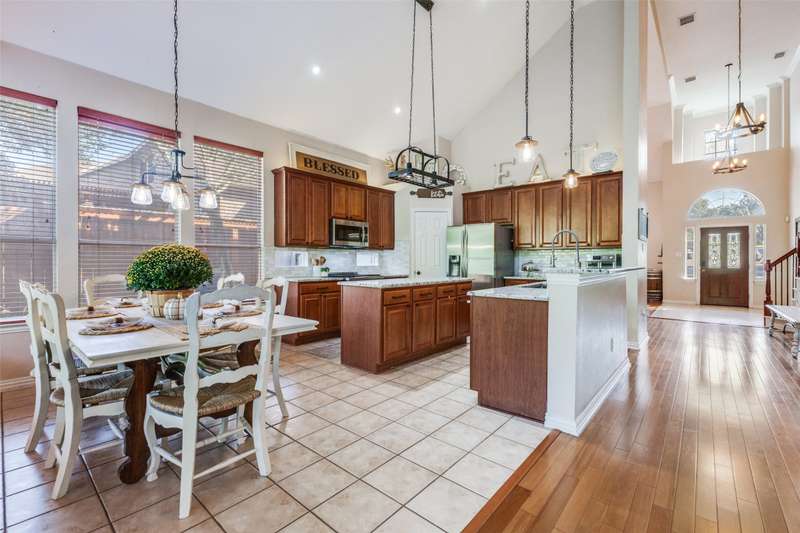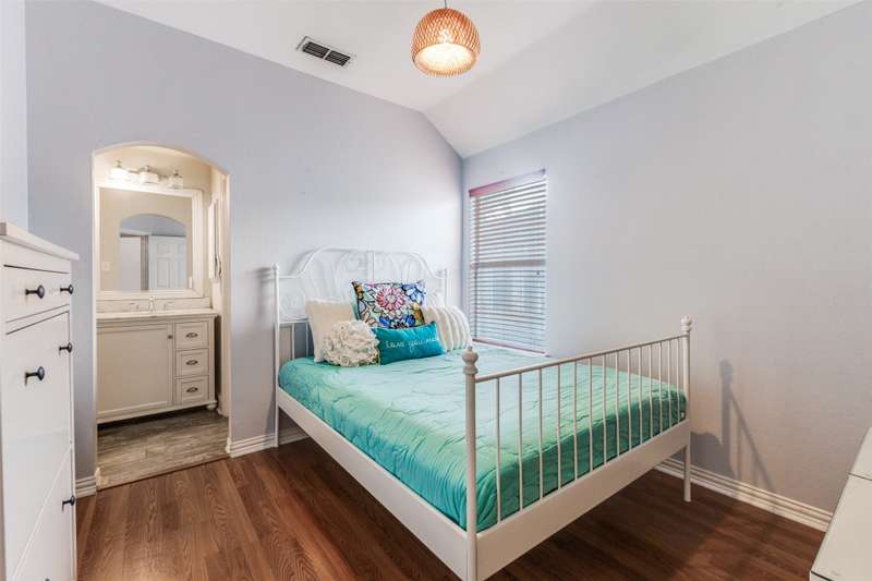 Your haven awaits on this desirable block in a beautiful neighborhood. Discover traditional beauty on the Rowlett Nature Trail, which is great for the entire family. At the end of the trail, you will find partial views of Lake Ray Hubbard. This inviting home is great for family living and entertaining with its open floorplan and many living spaces. An inviting kitchen with a central island and sunny eat-in space that opens right into the family room, makes it easy to cook, connect, and spend time together. The convenient first-floor layout offers a primary suite plus an additional bedroom perfect for guests, in-laws, or a nursery. The primary suite is a true retreat, with a private en-suite bath featuring dual sinks, soaking tub, a walk-in shower, and a generously sized walk-in closet. Upstairs offers three additional bedrooms, two full baths, an open loft, and a large game room ideal for family fun and everyday living. Enjoy exceptional outdoor living with covered and open patios, a balcony overlooking the treetops, and a sparkling pool with spa and cascading waterfall for year-round enjoyment.