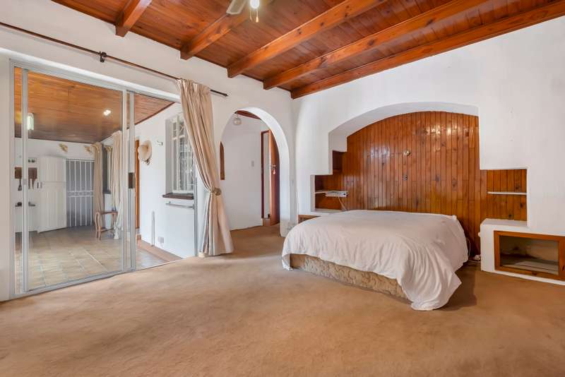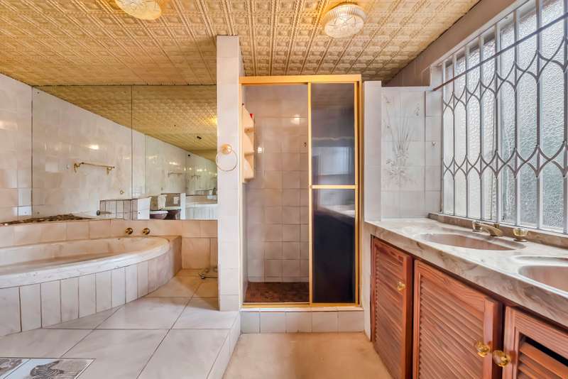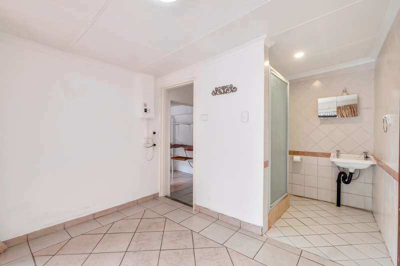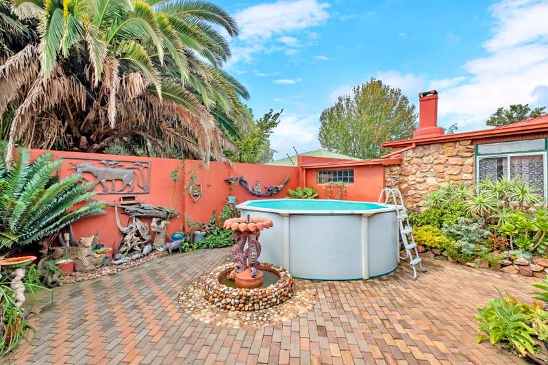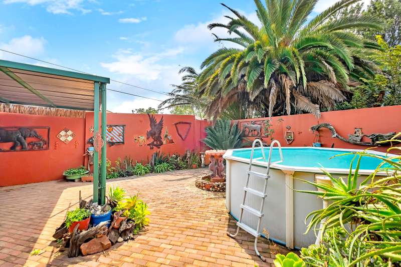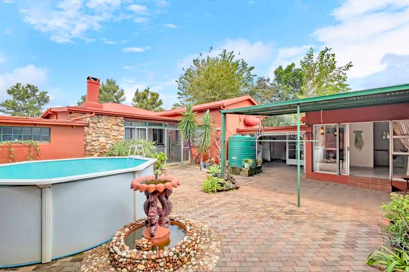 This versatile property is brimming with possibilities! Whether you're seeking income-generating cottages—complete with two separate units, each with its own private entrance—or craving extra space, you can easily restore the home to its original layout for additional bedrooms. The choice is yours! Entrance, open plan lounge and dining room. Spacious kitchen with electric countertop and eye level oven. Principal bedroom with deluxe bathroom, double vanity, corner bath, shower. Loads of built in cupboards. Enclosed stoep/patio with open built in braai with sliding doors onto patio. Hacienda-style patio featuring fun African artwork, a refreshing porter swimming pool, and a water fountain. 2x cottages with separate entrance - Bachelor pad with bathroom - shower basin and toilet. Kitchenette and cosy patio, outside sink. 2nd Cottage - Lounge, kitchen area, bedroom, bathroom. 2x garages - one garage for the cottage and the garage for the main house has extra length to fit in 2/3 cars tandem style with direct access into property. Off-street parking. Extra features - Alarm system, armed response with panic buttons, trellidors, electric fence, irrigation system.
