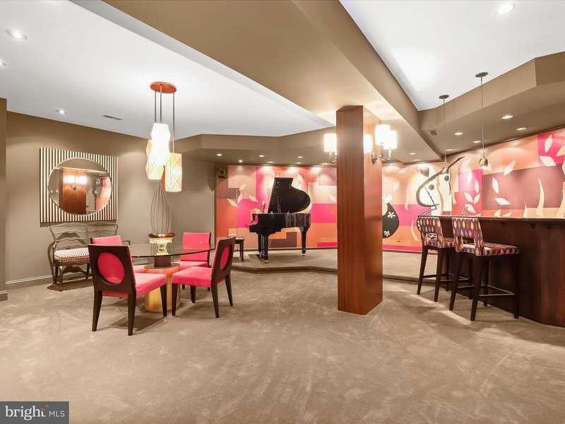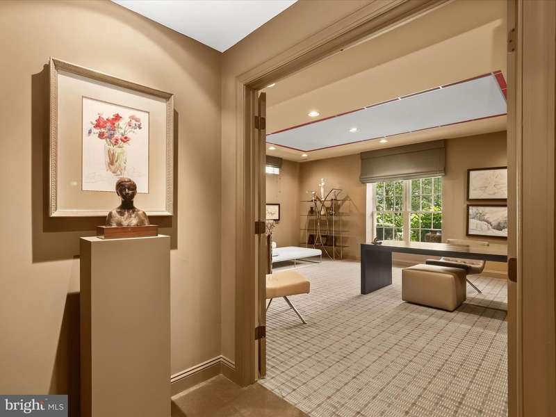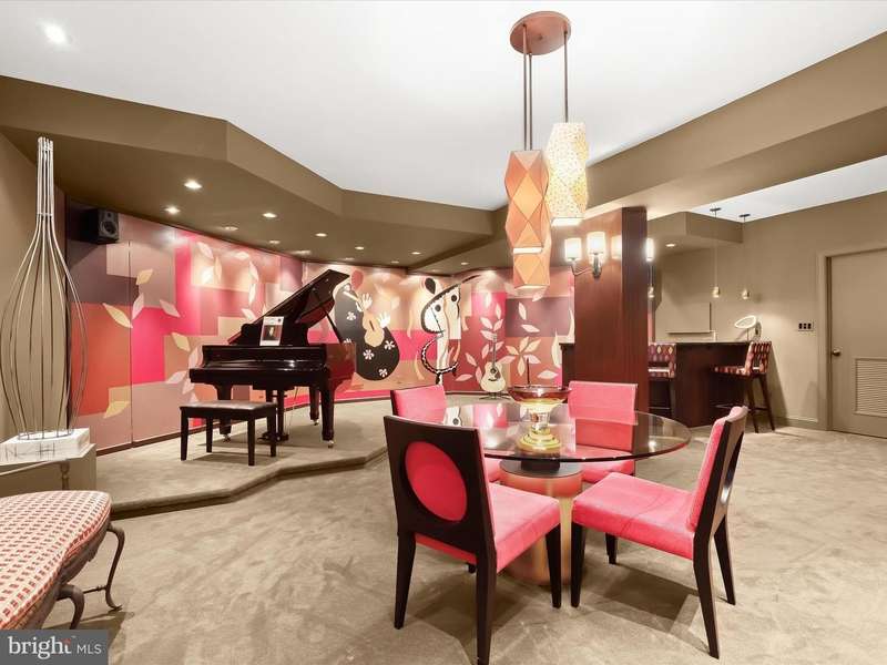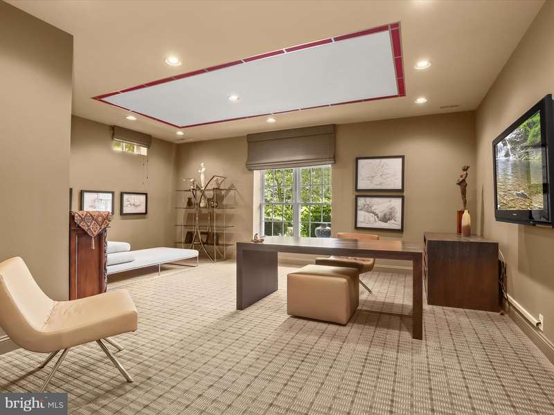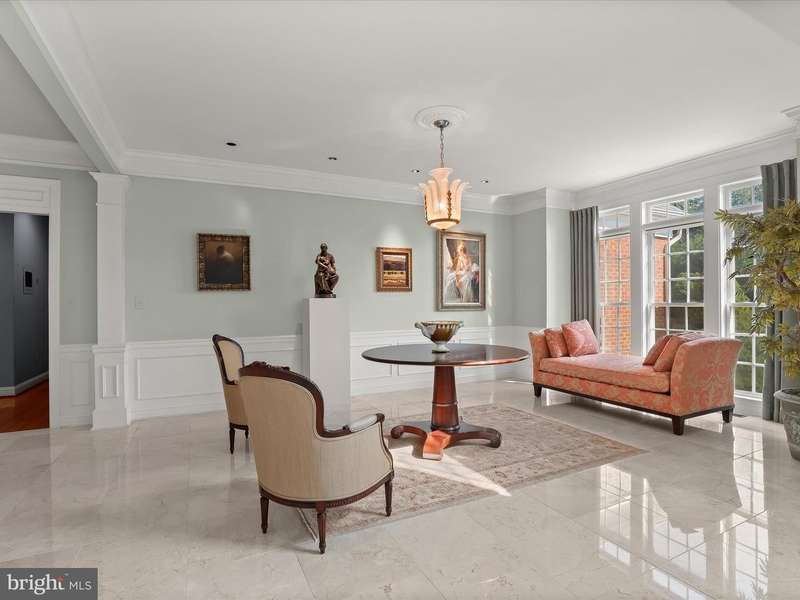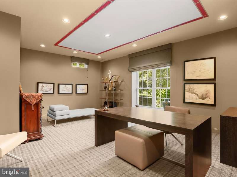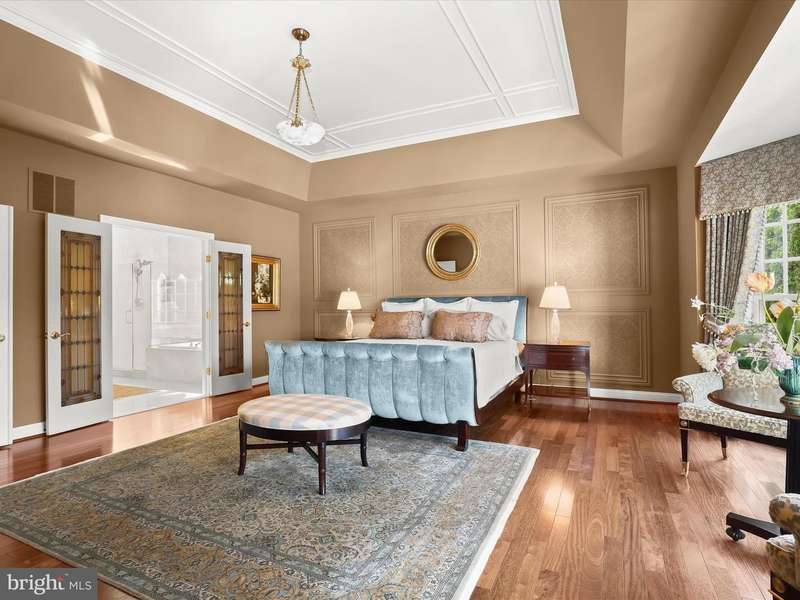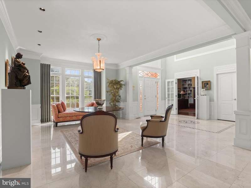 This exquisite brick estate, maintained by its original owners, offers more than 7,000 square feet across three finished levels, all nestled on nearly an acre of lush, private land. Blending timeless craftsmanship with luxurious amenities, the home presents a thoughtful balance of grand entertaining spaces and tranquil private quarters. With custom details, soaring ceilings, multiple fireplaces, a main-level primary suite, roof replaced in 2023, and even an interior sauna, this residence is as impressive as it is inviting. A stately circular driveway with a paver-stone approach welcomes you to the front entrance. Inside, the two-story foyer sets the tone with gleaming marble floors and elegant picture frame molding. To the right, the formal dining room mirrors these finishes and adds crown molding for a refined touch. To the left, a distinguished home office features a fireplace flanked by built-in bookcases and a striking coffered ceiling, ideal for work or study. At the heart of the home is the magnificent great room, where a soaring two-story ceiling and a wall of windows flood the space with natural light. An atrium door, framed by sidelights and topped with clerestory windows, opens to the rear deck, seamlessly connecting indoor and outdoor living. Anchored by a cozy fireplace, this room gives access into the open-concept kitchen, breakfast area, and family room, creating a unique layout perfect for both everyday life and elevated entertaining. The kitchen features 42-inch cabinetry with display space, granite counters, GE Profile stainless steel appliances including a gas cooktop and double wall ovens, a walk-in pantry, and a convenient breakfast bar. The adjoining family and breakfast rooms share a dual-sided fireplace with the great room and have a vaulted ceiling, offering another warm and welcoming gathering space. A butler's pantry connects the kitchen to the formal dining room, and nearby, the laundry room and access to the three-car side-loading garage offer everyday functionality. The main-level primary suite is a luxurious retreat with double door entry, rich hardwood flooring, picture frame molding, a tray ceiling, and a sunlit bump-out sitting area. The spa-like primary bath includes a double sink vanity, a soaking tub, and a tiled shower with frameless glass, and direct access to two spacious walk-in closets. Upstairs, four generously sized bedrooms each feature walk-in closets. One has a private en-suite bath, and two of the bedrooms are connected by a shared full bath, offering comfort and convenience for family or guests. The lower level evokes the ambiance of a high-end boutique hotel. Rich wood accents, sconce and pendant lighting, a sleek stone faux fireplace, and multiple sitting areas create an upscale lounge atmosphere with access to the backyard. A raised platform stage is perfect for at-home performances or karaoke nights. The wet bar with seating and a beverage refrigerator anchors the space, and the hardwired sound system enhances the experience. This level also includes a bonus room ideal for exercise or hobbies, a spacious sixth bedroom, and a moody full bath complete with steam shower, heated floor, and a sauna large enough for multiple guests. There is also ample unfinished storage space for seasonal or long-term items. The backyard is a private, park-like escape. A large composite deck overlooks a winding paver walkway, detailed with inset landscaping, a decorative bridge, and mature plantings. This walkway leads to a second patio with a pergola, perfect for outdoor dining or quiet reflection. A six-foot fence encloses most of the backyard while maintaining views of the surrounding landscape and gardens. Additional features include a zoned HVAC, a side-loading three-car garage, and access to highly rated schools. Ideally situated and thoughtfully designed, this exceptional home offers luxury, comfort, and distinction in equal measure.