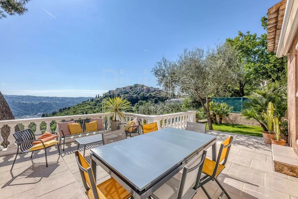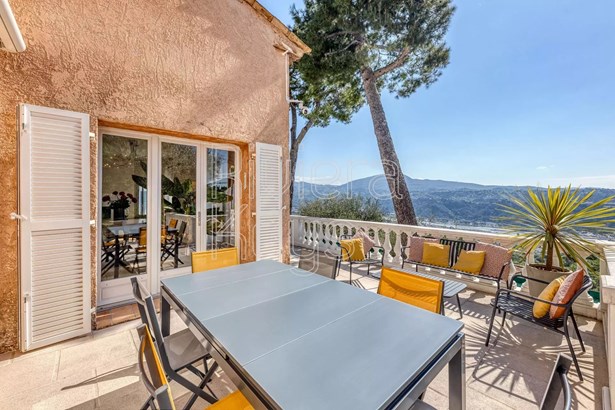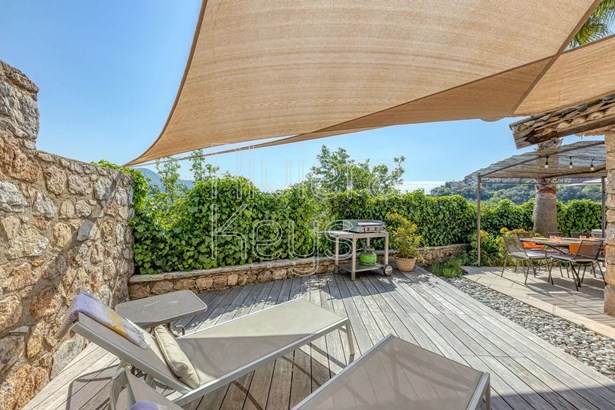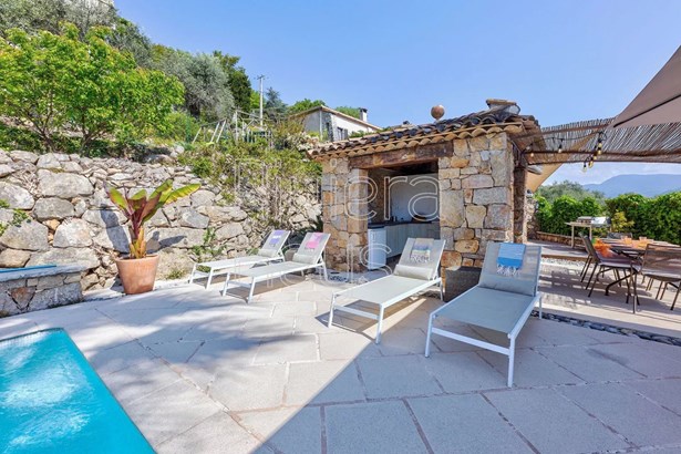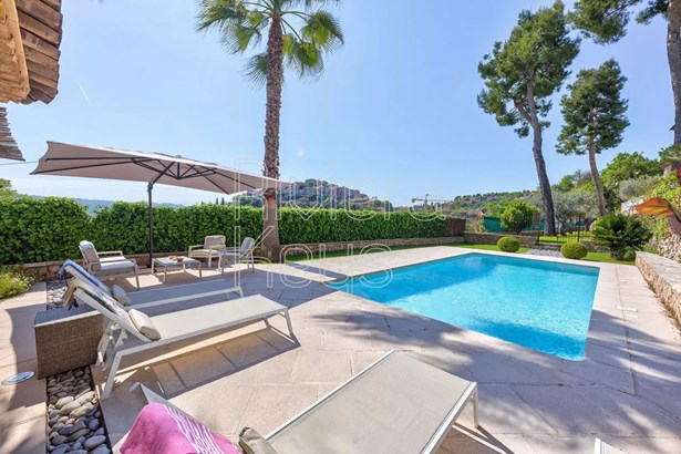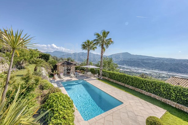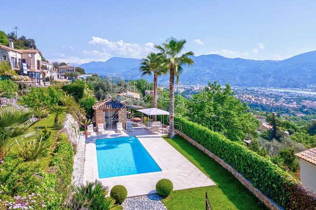 Located near the picturesque village of Gattières, just 17 km from the center of Nice, this beautifully renovated villa is full of charm and elegance. Set on a lush landscaped garden of 1 560 m², it is adorned with cypress trees, olive trees, a lemon tree, apricot tree, pomegranate tree, orange trees and vibrant flowers – creating a truly idyllic setting.The property also boasts a lovely swimming pool, a spacious terrace, and a fully equipped pool house – ideal for enjoying sunny days in total peace.The entrance is located on the upper floor, which features 3 bedrooms, a shower room, and a bathroom. The lower floor opens onto a welcoming living area with a fireplace, a generous open-plan kitchen leading to the living room and terrace, an additional bedroom, a guest toilet and a large laundry room.A peaceful haven waiting to be discovered!