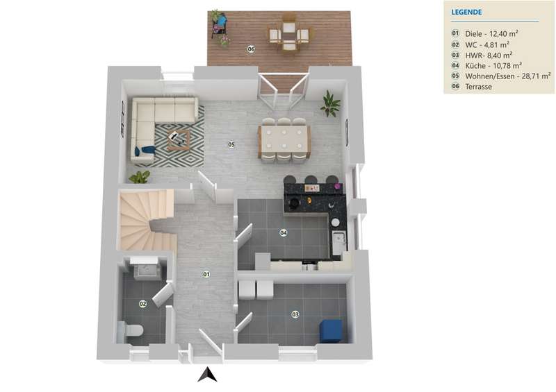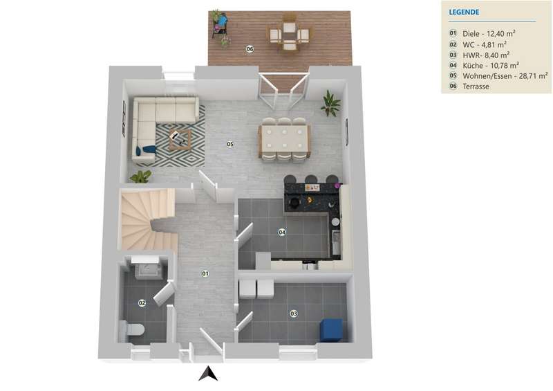 Are you looking for a new home that offers space for your family and meets the latest energy requirements? In Sankt Michaelisdonn, 3 terraced houses are being built in a central location in solid construction ready for occupancy (except for the kitchen and garden design), also to KfW-40 standard on request. Floor coverings and paintwork are also included in the price. The construction work will be carried out by master craftsmen from the region and will not only take into account the requirements of the energy and energy-saving regulations, but will also only use brand names and quality building materials. All houses offer 4 bedrooms, an open kitchen (without fitted kitchen), a utility room, a guest WC, a full bathroom, underfloor heating throughout the building and a paved south-facing terrace of around 15 m². Each house will have its own air source heat pump. House 1 (left) has a living space according to WoFIV of 118.75 m², a private garden of approx. 420 m² plus proportionate communal areas, as well as 1 parking space, whereby an additional parking space directly at the house would be possible. The purchase price for this house is € 398,744 turnkey incl. painting and flooring. House 2 (middle house) has a living space according to WoFIV of 118.75 m², a private garden of approx. 195 m² plus proportionate communal areas, as well as 2 parking spaces. The purchase price for this house is € 378,030 turnkey incl. painting and flooring House 3 (on the right facing the street) has a living space of 118.75 m² according to WoFIV, a private garden of approx. 230 m² plus proportionate communal areas, as well as 1 parking space, whereby an additional parking space directly at the house would also be possible here. The purchase price for this house is € 388,388 turnkey incl. painting and flooring. In addition, a builder's liability insurance, a building performance insurance, the fire shell insurance, as well as a completion guarantee are a matter of course. Let us convince you of the attractiveness of this offer.