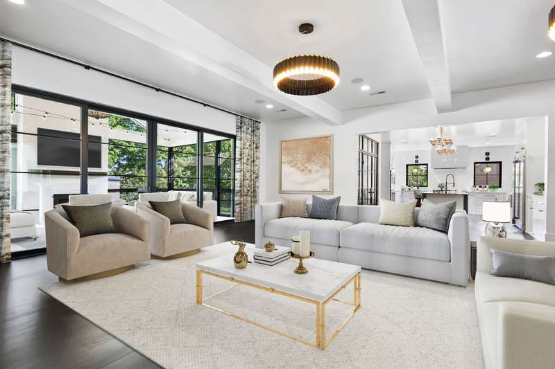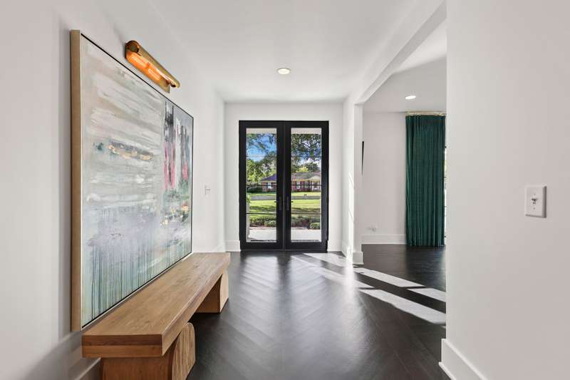 A truly remarkable ONE LEVEL home on a gorgeous .94 acre lot with a pool and pool house that all lives and feels just like brand new construction. NEW roof, NEW HVAC with allergy guard filter system, NEW windows, NEW water heater, NEW outdoor lighting, NEW designer finishes throughout, and professionally organized by The Home Edit. Welcomed by a custom gated entry and flagstone walkway, step inside to true hardwood floors with a herringbone entryway, designer lighting throughout and windows that flood every single room with natural light. The chef's kitchen features double ovens, top of the line appliances, quartz countertops, inset cabinetry, two refrigerated drink drawers, 6 burner gas range, hidden KitchenAid retractable countertop, hidden coffee bar cabinet, and a custom glass door walk-in pantry of your dreams. A friend's entry is located just through the mudroom located conveniently right beside the kitchen. Entertain with ease with a surround sound system and full wet bar located right beside the spacious living room and kitchen which is equipped with a Scotsman ice maker, wine fridge, and sink. The home has the extra spaces you need featuring a true office with a custom quartz desktop for two with built-in cabinets all overlooking the beautiful front yard as well as a hobby room perfect for a workout room, play space, craft room, or storage room. The primary suite with vaulted ceilings is located on its own wing of the home with a spa bathroom and luxurious walk-in closet. End your day on the screened in porch with a gas fireplace all overlooking the backyard oasis. The stunning pool and pool house with a half bathroom and washer and dryer hookups are surrounded by professionally designed landscaping and lighting making it the perfect space to end your day or entertain your family and friends. Crawlspace is fully encapsulated and conditioned with brand new dehumidifier-2025. New pool house water heater-2025. New pool water filter-2025. Vol HOA.