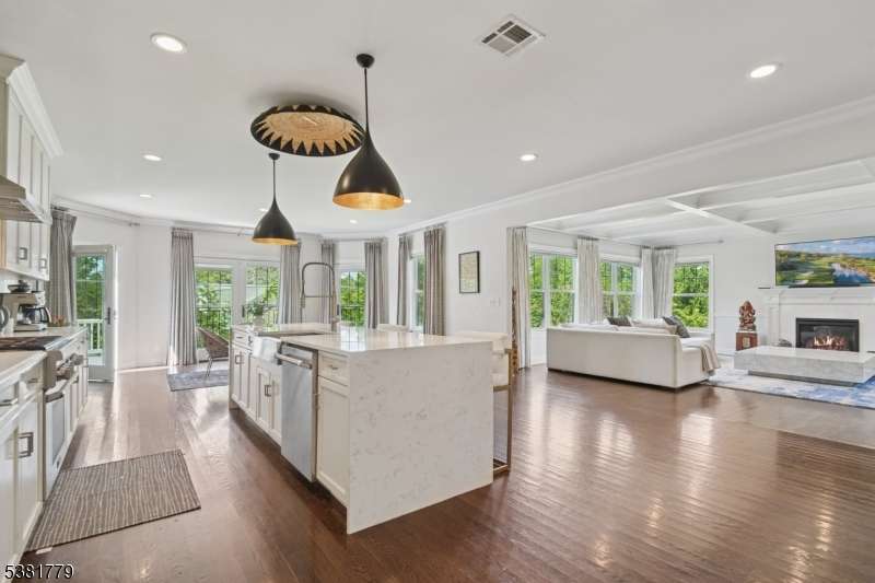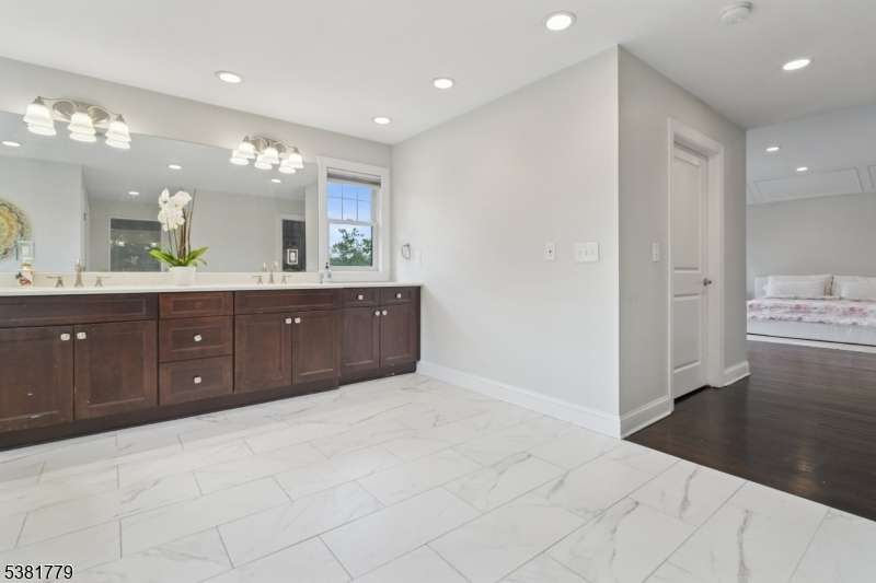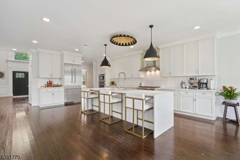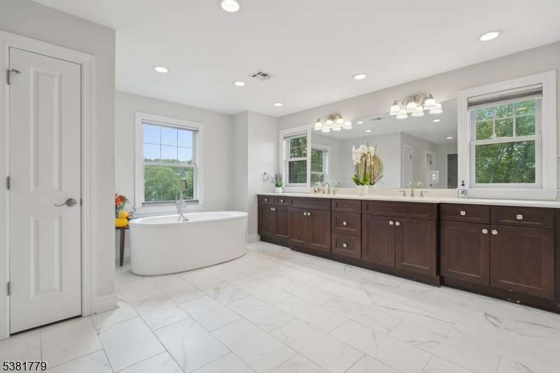 Magnificent resale of new construction built in 2017, this 6,657 sq ft center hall Colonial features 5 bedrooms and 5.1 baths on totally level .57 acre property with a gorgeous, totally fenced backyard. The stunning sunlit gourmet eat-in kitchen has a huge new center island with quartz waterfall countertop, custom cabinetry and top of the line Stainless Steel appliances, gorgeous eating area with 3 French doors opening to a Juliet balcony and deck overlooking the stunning property, all totally open to the family room with coffered ceiling and gas fireplace. This home has an incredible open floor plan as well as terrific natural light from new Andersen windows and French doors! There is a conveniently located 1st floor in-law suite with a beautiful bath. The second level features a luxurious primary suite that could rival any 5 star hotel, with 2 walk-in closets and a spa-like primary bath with soaking tub and shower. 3 more bedrooms, 1 en suite and 2 other bedrooms share a full bath with double sinks and shower over tub, and laundry room complete the 2nd level. The lower level has an exercise room, media room and full bath. Extensive woodwork throughout the home, great natural light and the ideal floor plan. Easy 1st floor access to a heated, air conditioned 2-car garage with epoxy floor. Bus service is provided to highly rated Deerfield Elementary, Washington, Millburn Middle and High Schools. Deerfield Elementary was recently ranked the #4 best public elementary school in New Jersey!