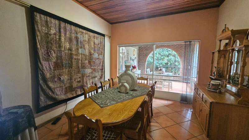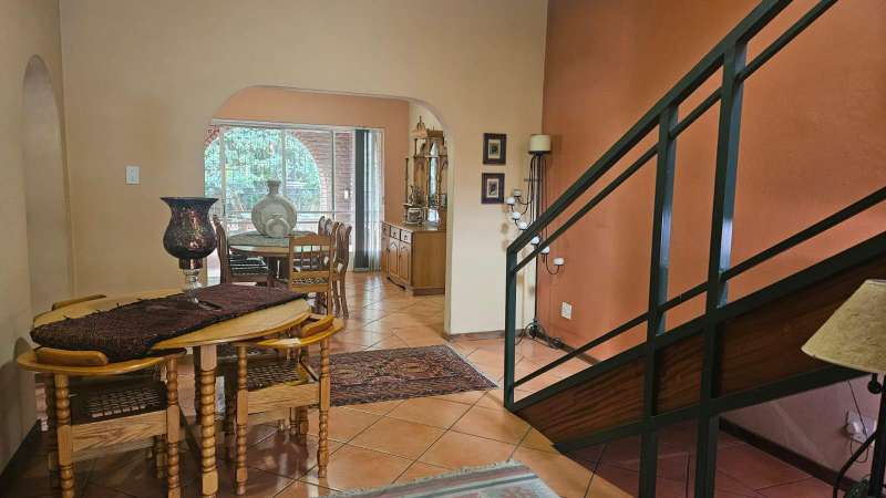 Superbly Positioned in the Heart of Pierneef Ridge Down Stairs: * 4 Bedrooms (2 Ensuite) * Farmstyle Kitchen with separate scullery, pantry and laundry. * Dining Room * Lounge and a lobby * Enclosed patio overlooking the Pool * Enclosed porch - ideal space to read your favourite noval Upstairs: * 5th Bedroom with own Balcony, Study area, Lounge and Full Bathroom, takes up the whole second floor. * 5th Bedroom can also be converted into a separate flat. Outside: * Double XL Garage - Space for Storage * Storeroom/ Servant?ÇÖs Quarters * Garden fitted with irrigation * Water Feature * Outside toilet * Laundry * Wendy house * Prepaid Electricity. * Good Security This generously sized home is filled with charm and thoughtful design, surrounded by a lush, irrigated garden and inviting swimming pool. Upper Level: The entire second floor is dedicated to a spacious and private suite featuring its own balcony, full bathroom, study nook, and lounge ?Çö perfect as a luxurious main bedroom or easily adaptable into a separate flatlet for extended family or rental income. Ground Floor: Downstairs offers four comfortable bedrooms, two of which are en-suite, providing ample space for family living. The character-filled farm-style kitchen includes a separate scullery, pantry, and laundry area. A welcoming dining room, cozy lounge, and a charming lobby complete the interior living space. Enjoy year-round relaxation on the enclosed patio overlooking the pool, or curl up with a good book in the sunny enclosed front porch. Outdoor Features: Extra-large double garage with room for storage Neat storeroom or domestic quarters Tranquil garden with built-in irrigation and a water feature Wendy house for additional storage or Toolshed Separate outside toilet and extra storeroom Equipped with prepaid electricity and reliable security features, this home offers peace of mind and comfort. Conveniently situated close to public transport routes and top schools including Laerskool Pierneef and Rietondale High School, this is a rare opportunity to secure a truly versatile family home in a premium location. CALL now to View!